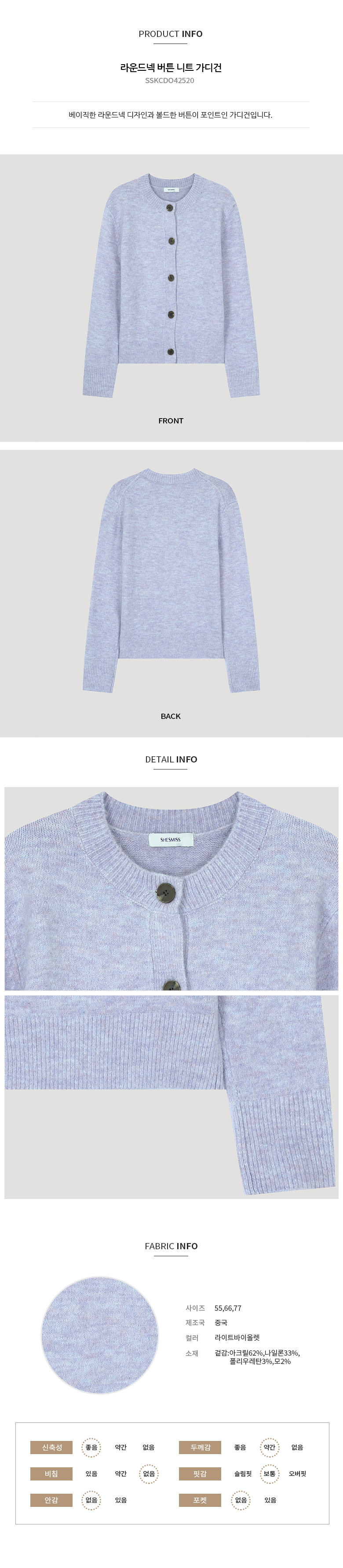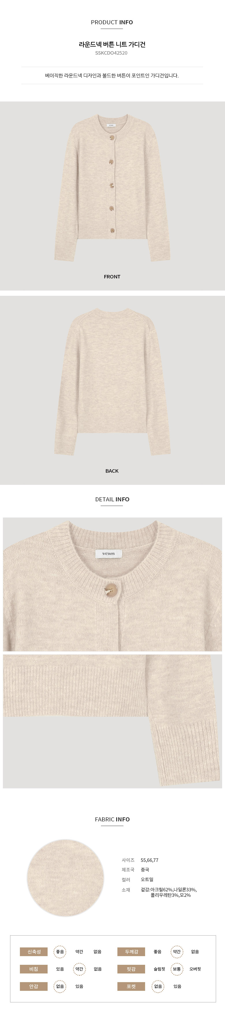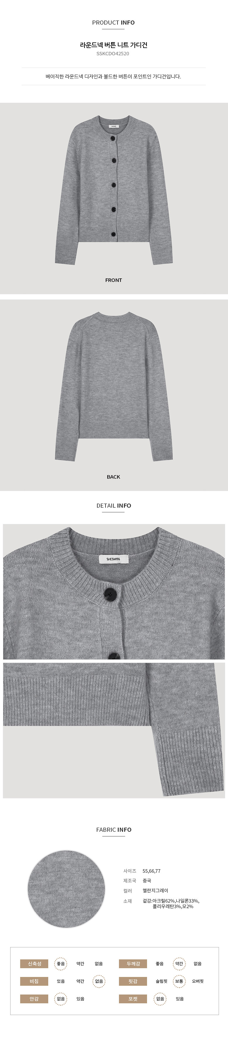 쉬즈미스 라운드넥 버튼 니트 가디건 SSKCDO42520