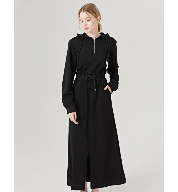 탱커스아웃 포켓 숄더 패드 트임 후드 롱원피스 (TW3OP006L0)