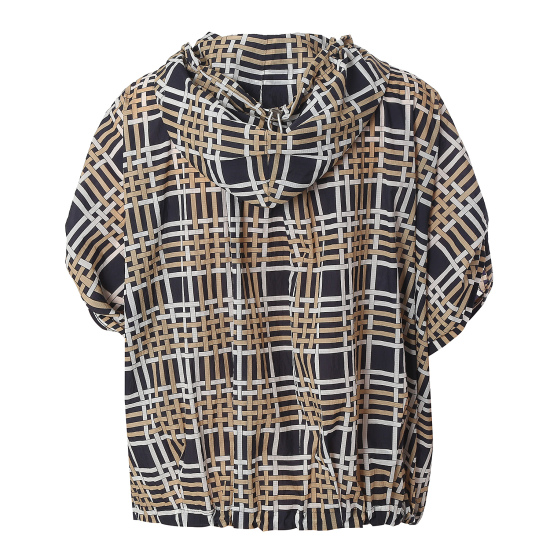 체크&무지 배색 디자인으로 심플한 매력이 돋보이는 스트링 후드점퍼