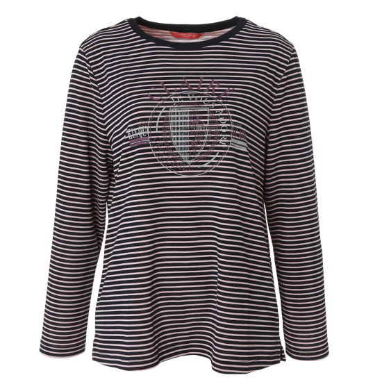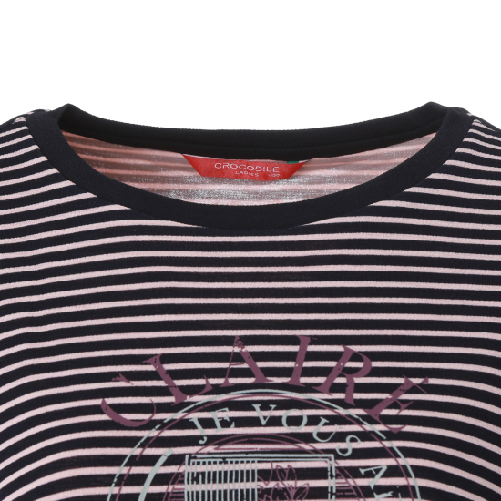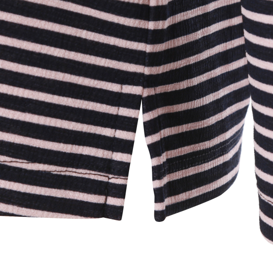 전체 스트라이프 패턴에 아트웍 프린트로 포인트를 주어 단독 코디에도 멋스러우며,