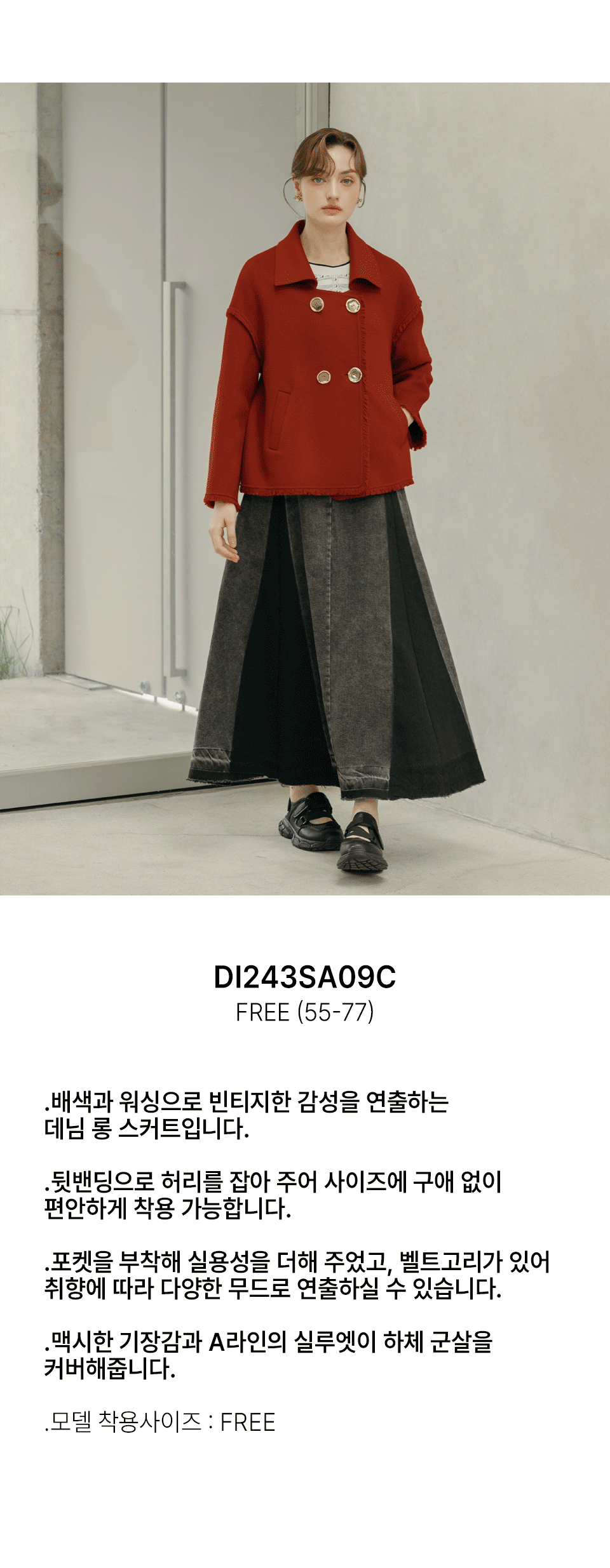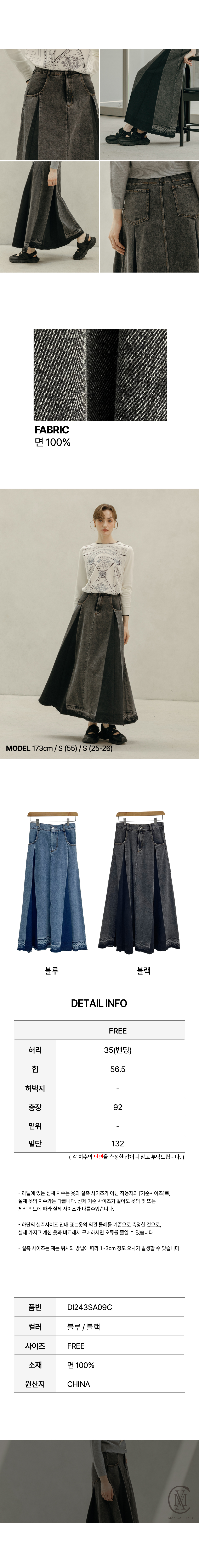 하프클럽/막스까르띠지오 플리츠 배색 워싱 데님 스커트