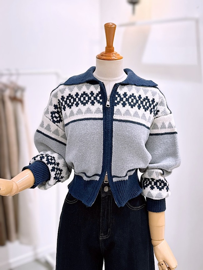 - 노르딕패턴의 카라넥 집업 가디건입니다