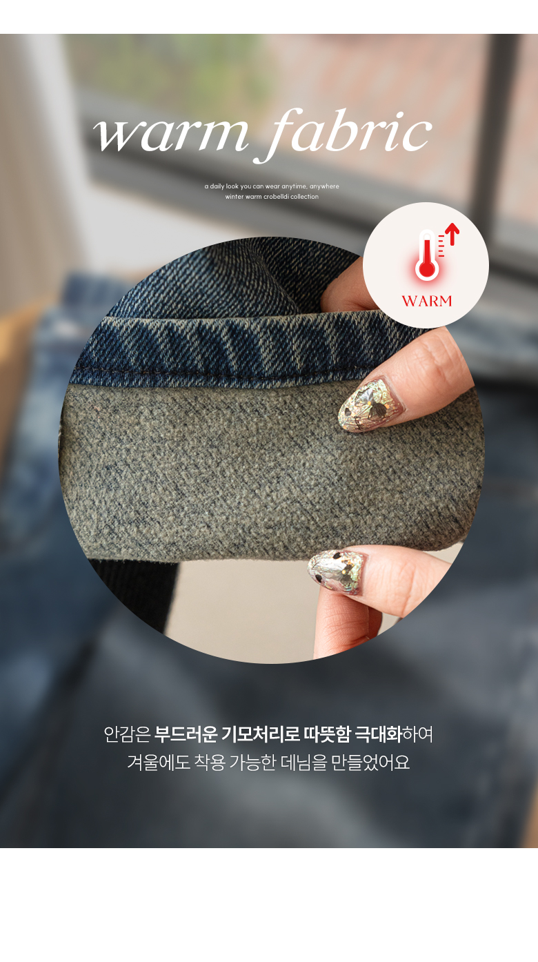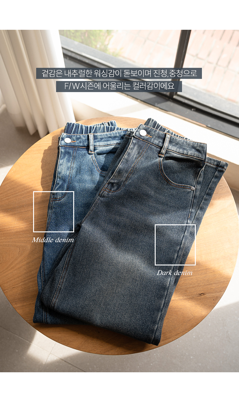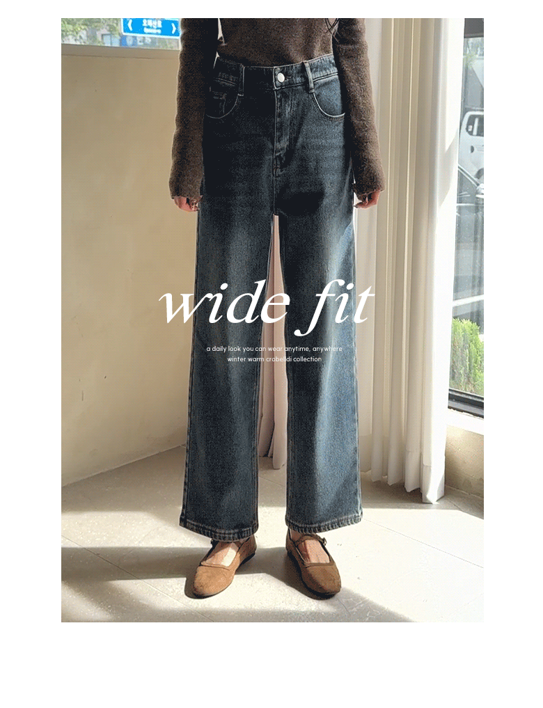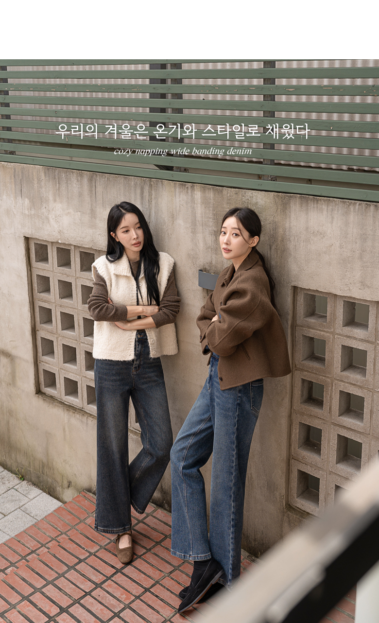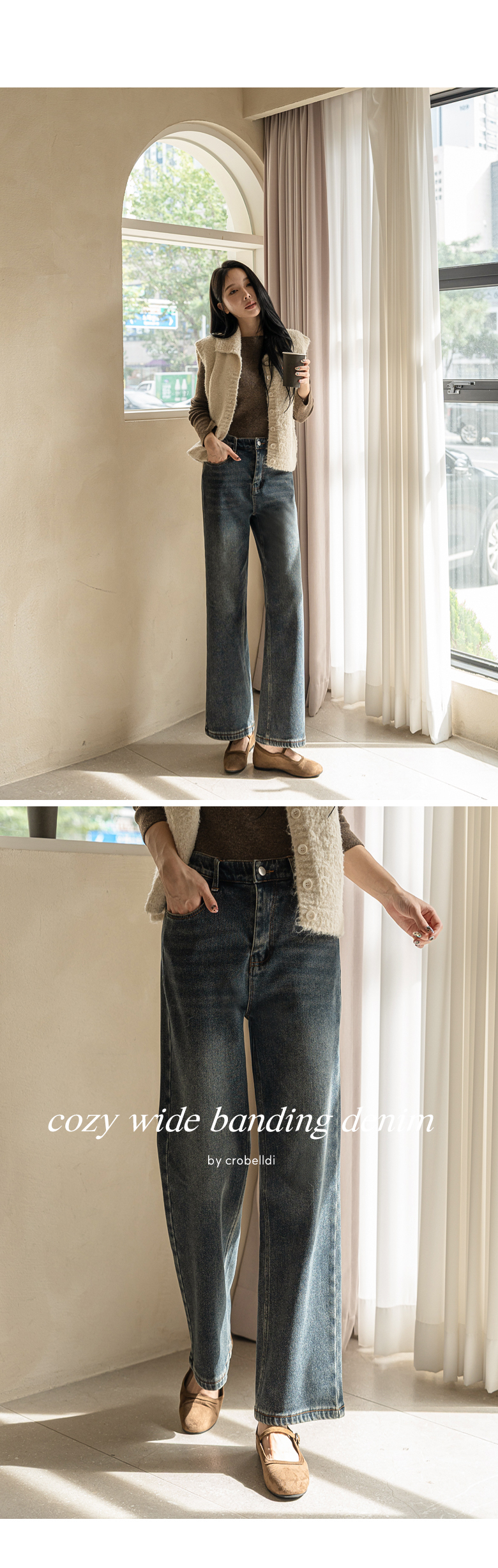 (크로벨디)포근기모 와이드밴딩 데님스판팬츠