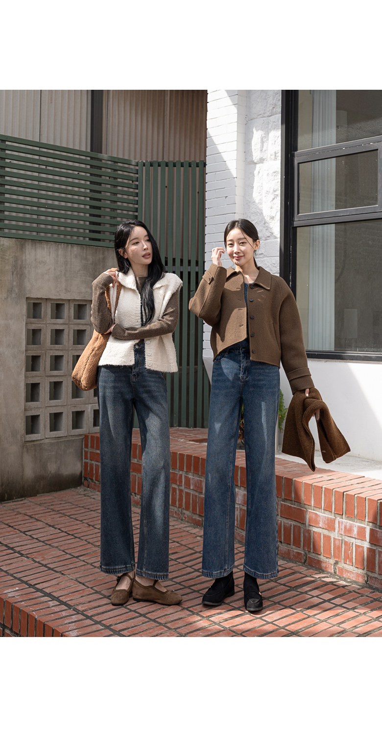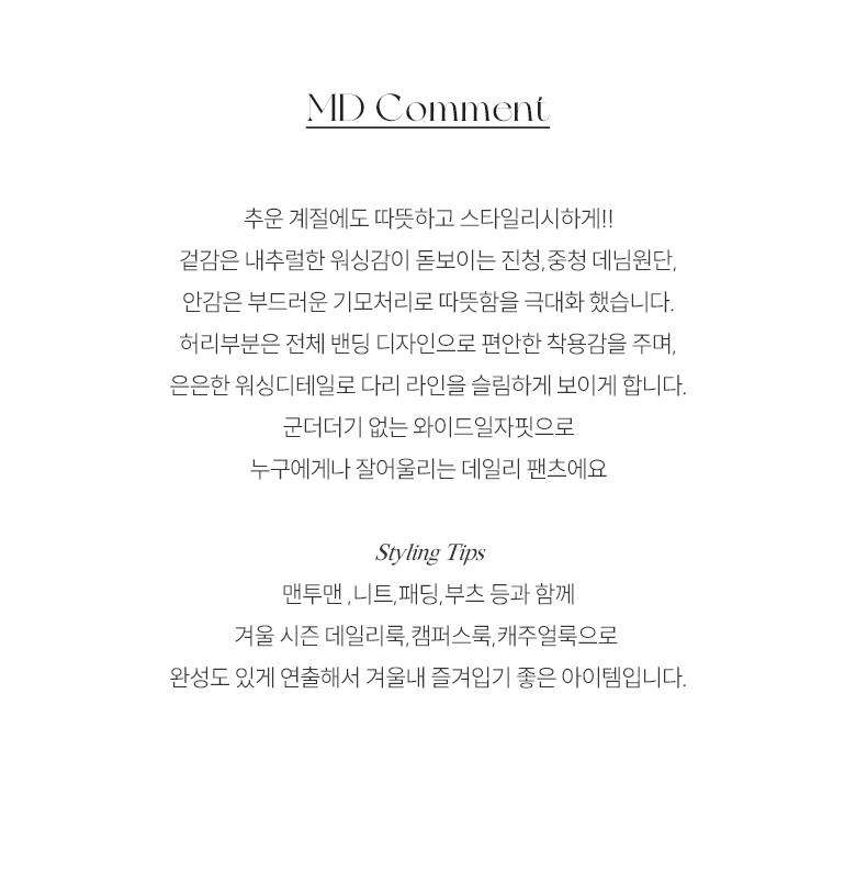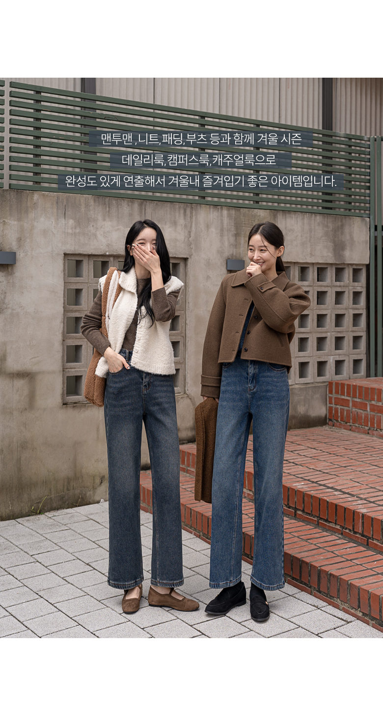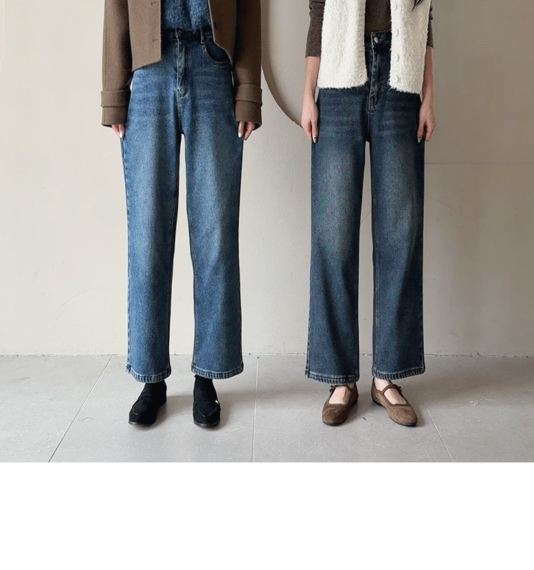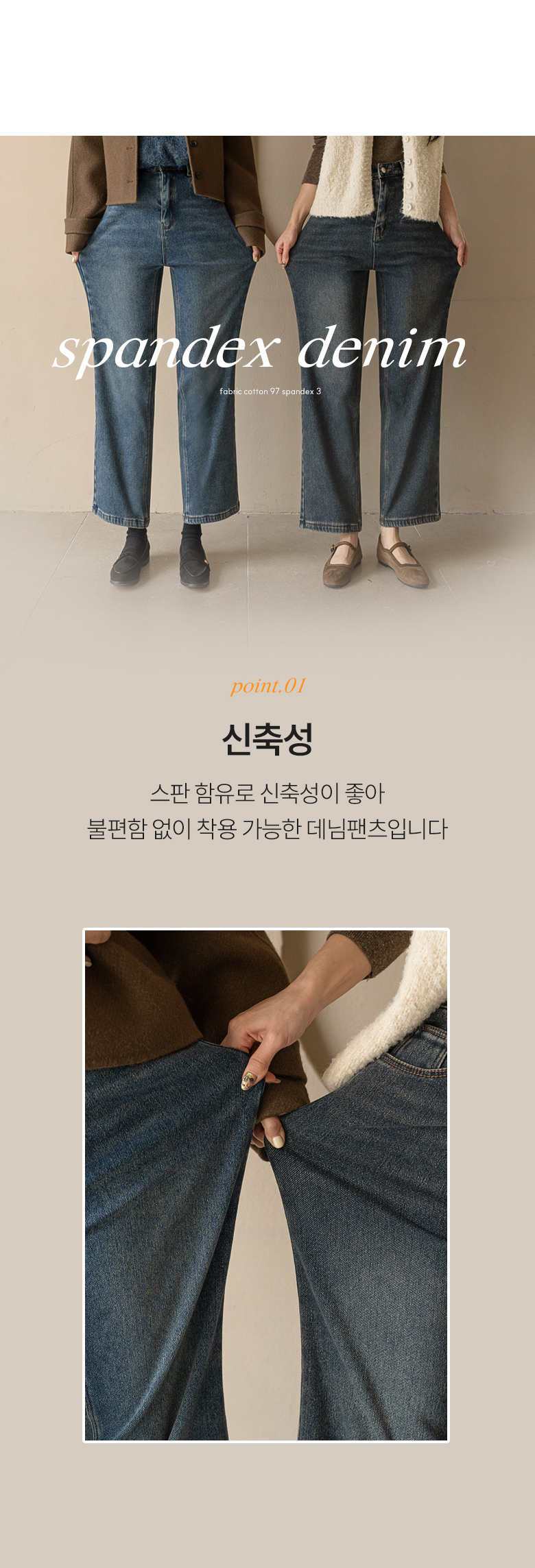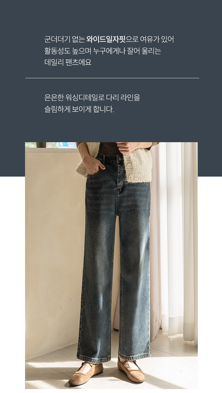 (크로벨디)포근기모 와이드밴딩 데님스판팬츠