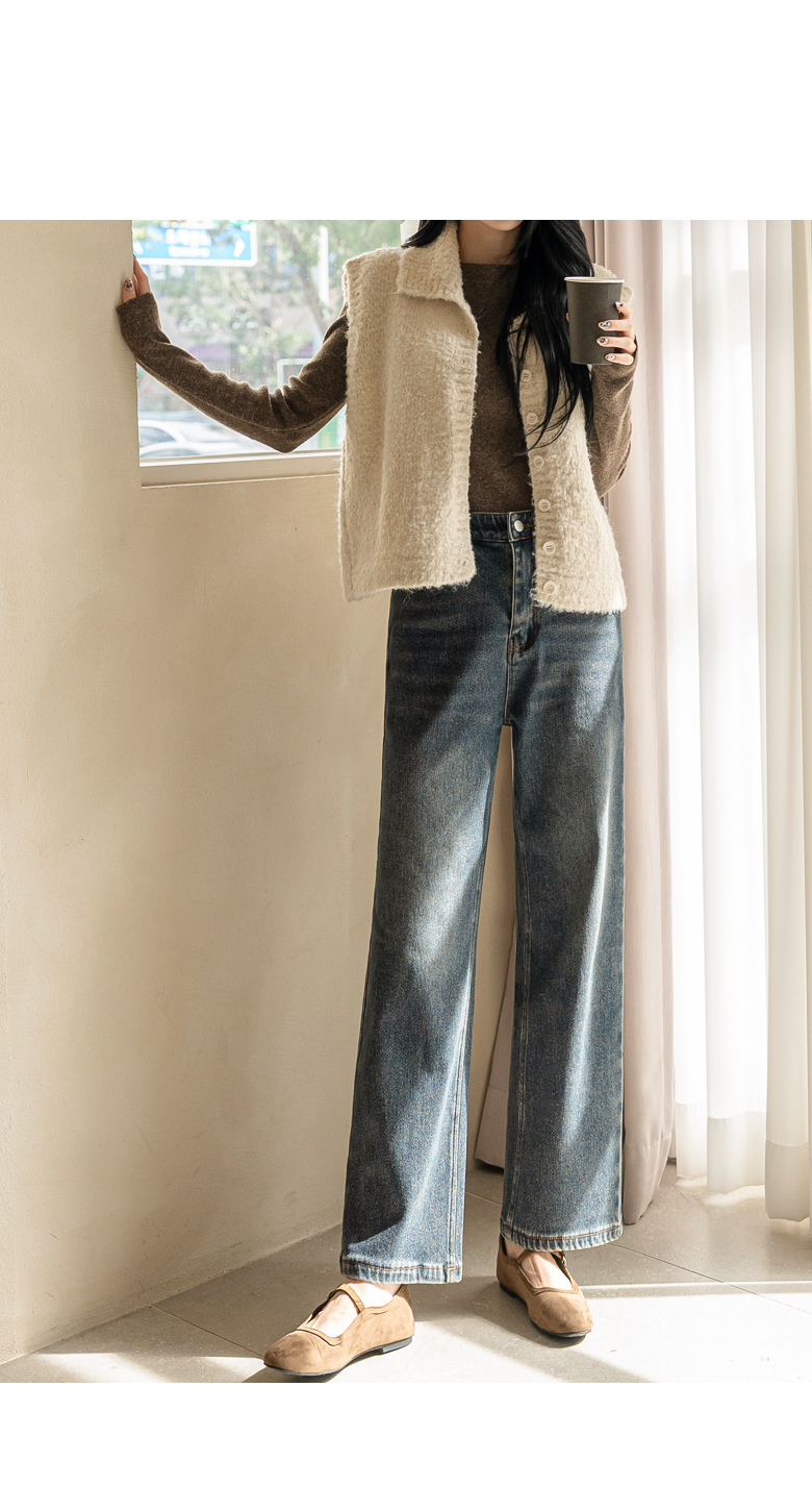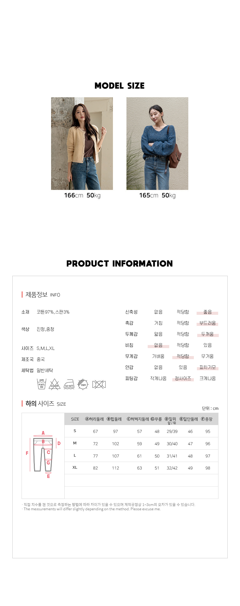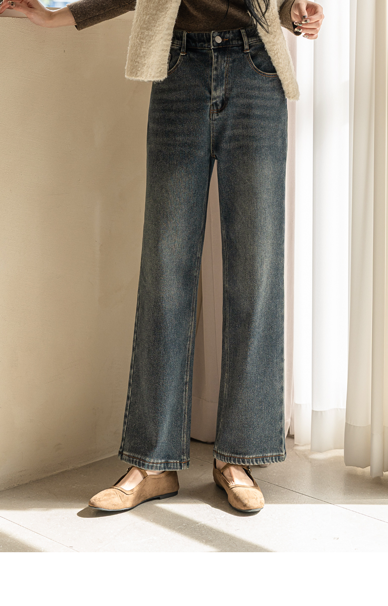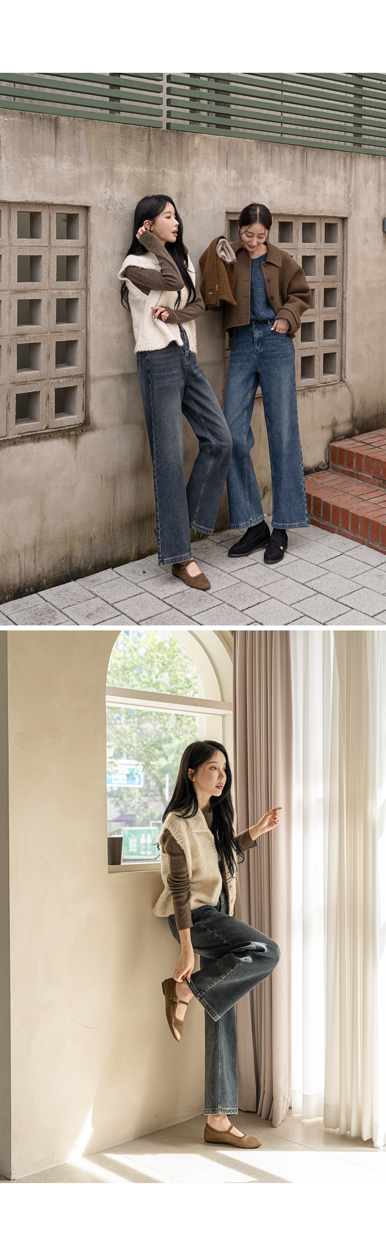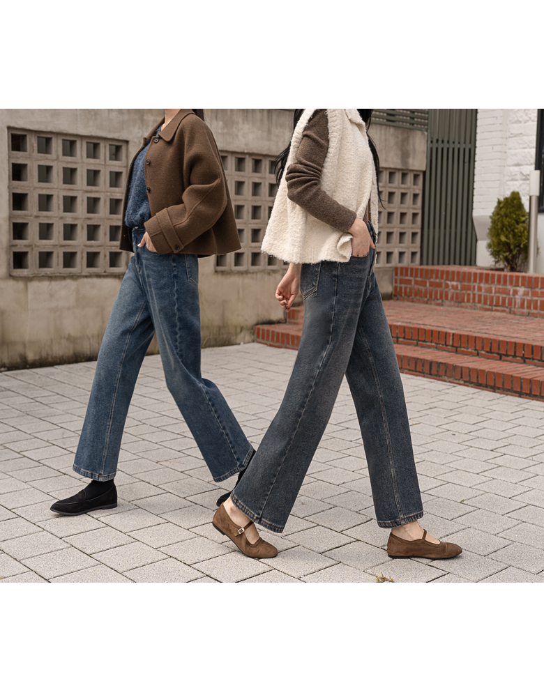 (크로벨디)포근기모 와이드밴딩 데님스판팬츠