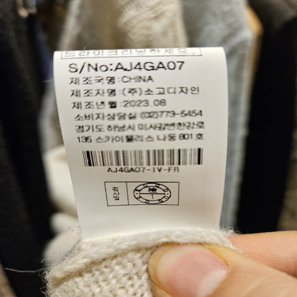 제품소재 : 모헤어35%,나일론8%,폴리에스터19%,아크릴18%