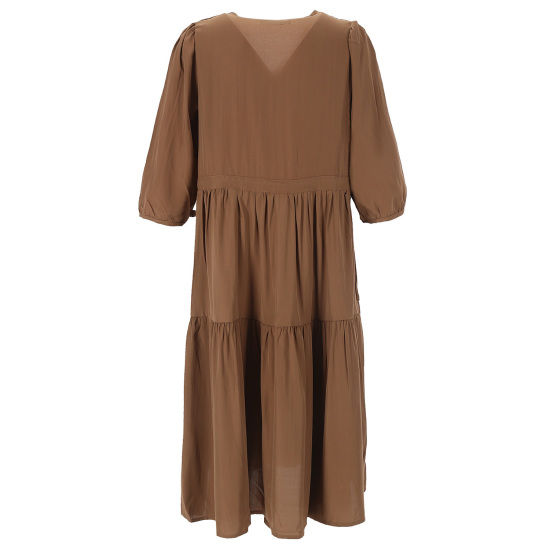(롯데백화점)허리 셔링 디테일 V넥 솔리드 반팔 롱원피스 APY3HO40I