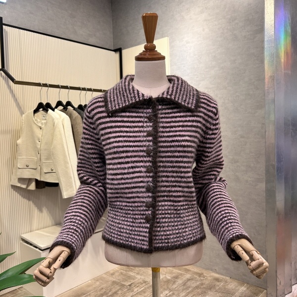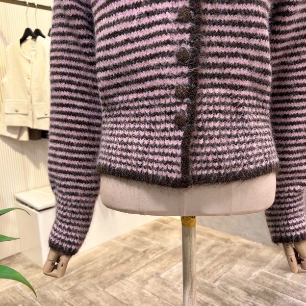 2025년 f/w 신상 스트라이프 카라 단추 가디건 입니다.