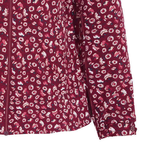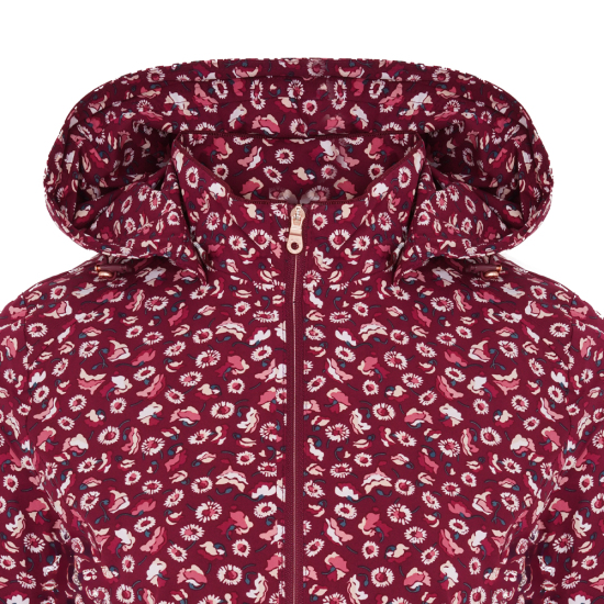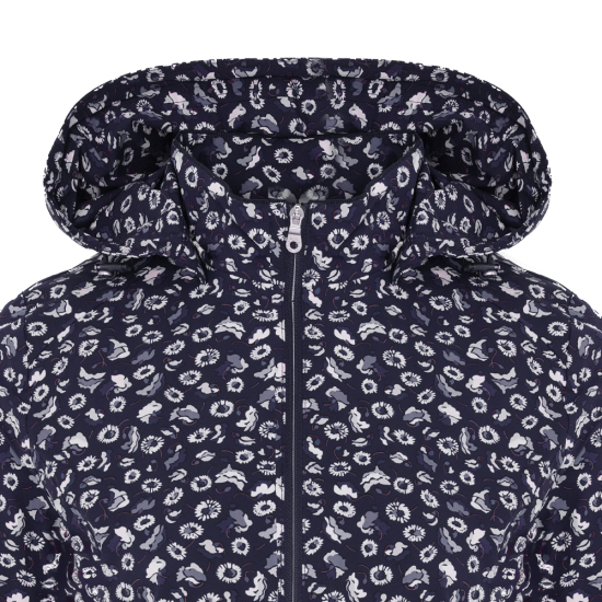 힙을 살짝 가리는 기장의 후드 탈부착 집업 점퍼. 호피 플리워 프린트로 착용시 화사하며 솔리드 배색 팁과 등부분의 벤틸 기능, 허리 스트로우 기능이 포인트.