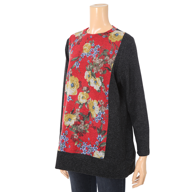 (롯데백화점)MK012T3511 페이즐리 플라워 배색 라운드 여성 티셔츠