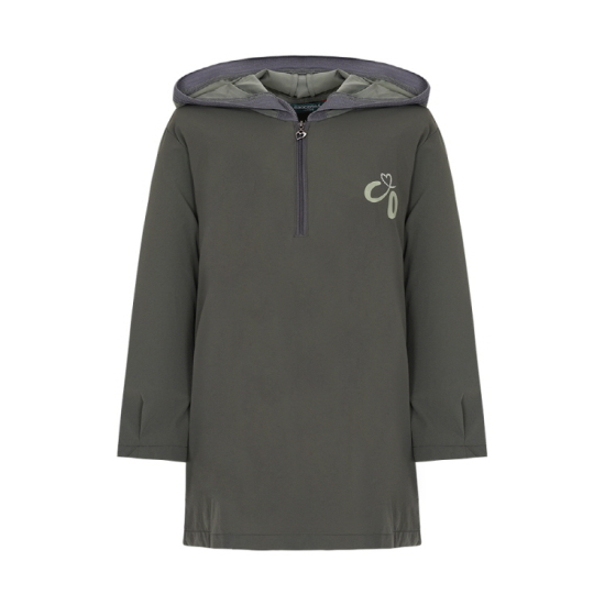 컬러믹스한 캐주얼하면서 포멀한 후드형 7부소매 티셔츠.