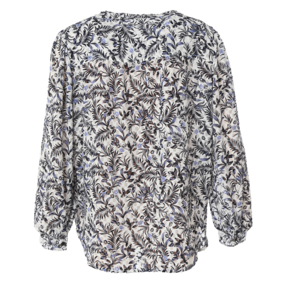 프린트 자가드 풀오버 블라우스 블루종 디테일로 허리를 한 번 잡아주었습니다.