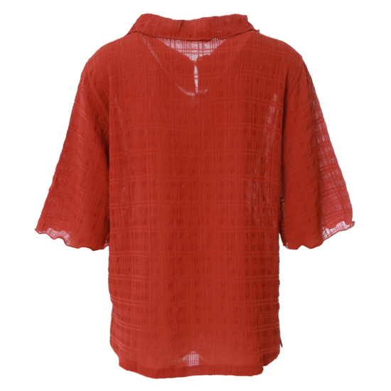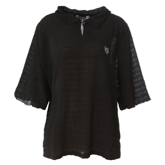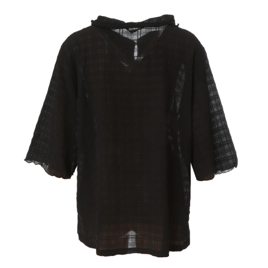 체크 자가드 쭈글이로 한여름 시원하게 입을 수 있는 블라우스형 티셔츠