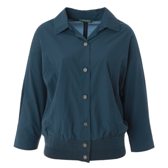 밑단에 니트로 블루종을 주어 볼륨감을 살린 블라우스