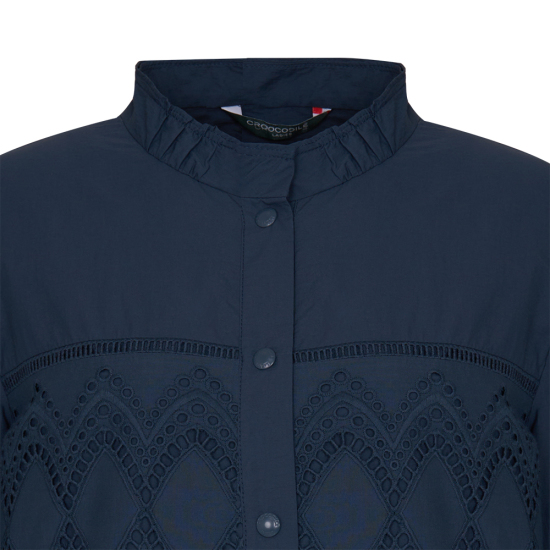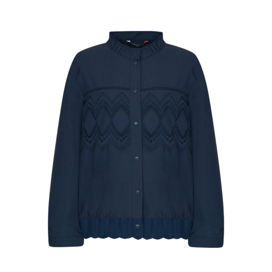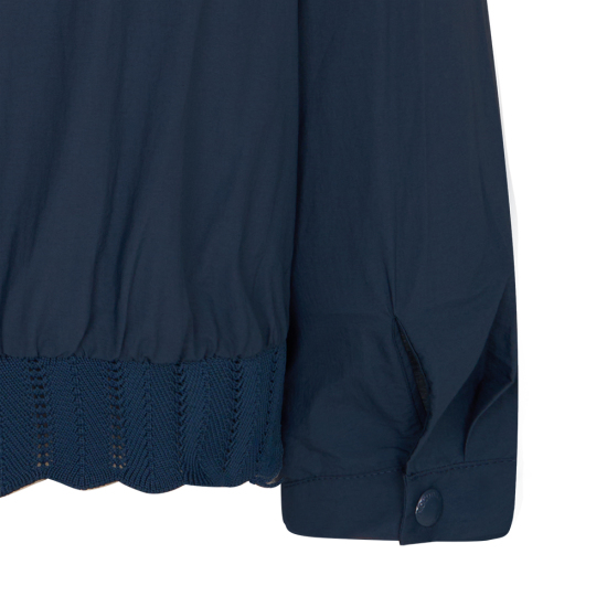펀칭 레이스와 니트 시보리로 볼륨을 준 디자인입니다. 여성스러우면서도 케주얼하게 연출 할수 있는 아이템으로 데님이나 아우터 형식으로도 착용 할수 있는 걸치기용 블라우스입니다.