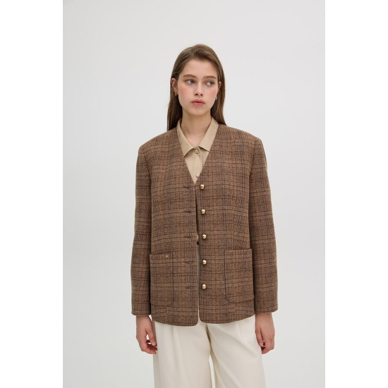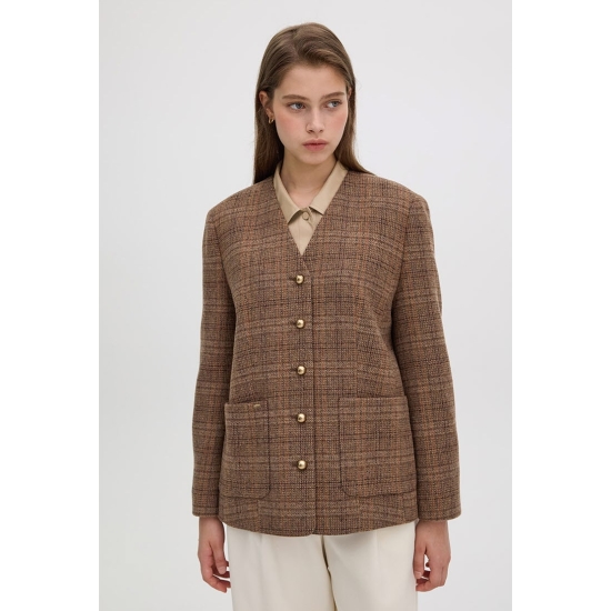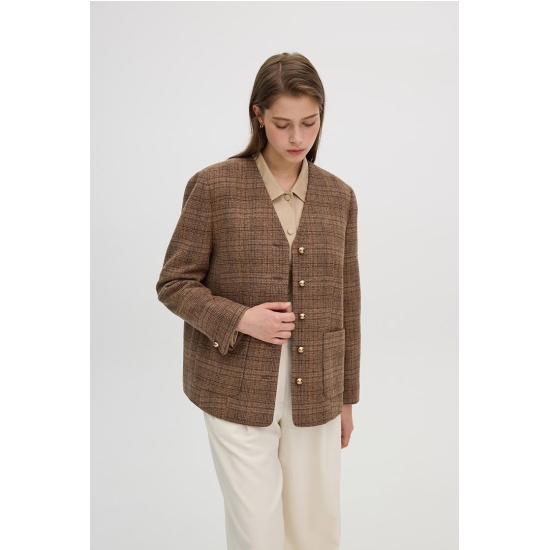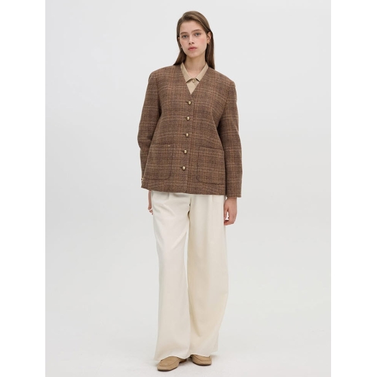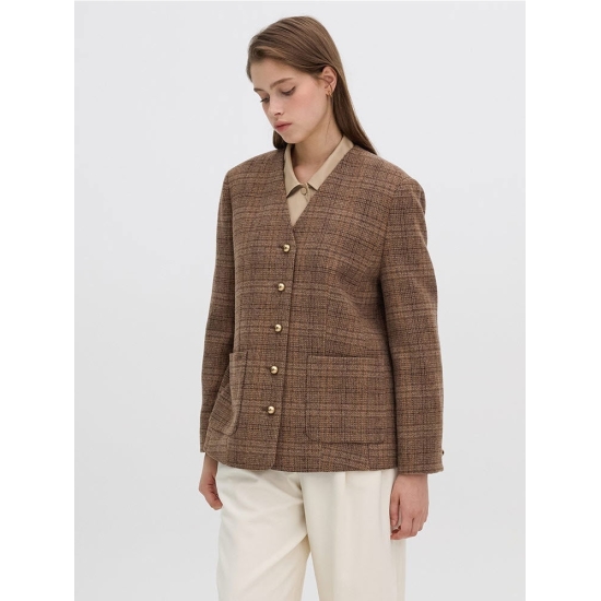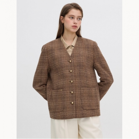 (롯데백화점)V넥 체크 울자켓 (OW4WJA40)