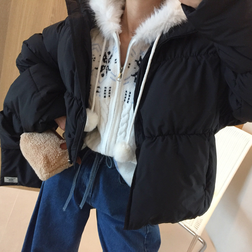 방울끈과 퍼후드로 따뜻하게 착용 가능합니다.