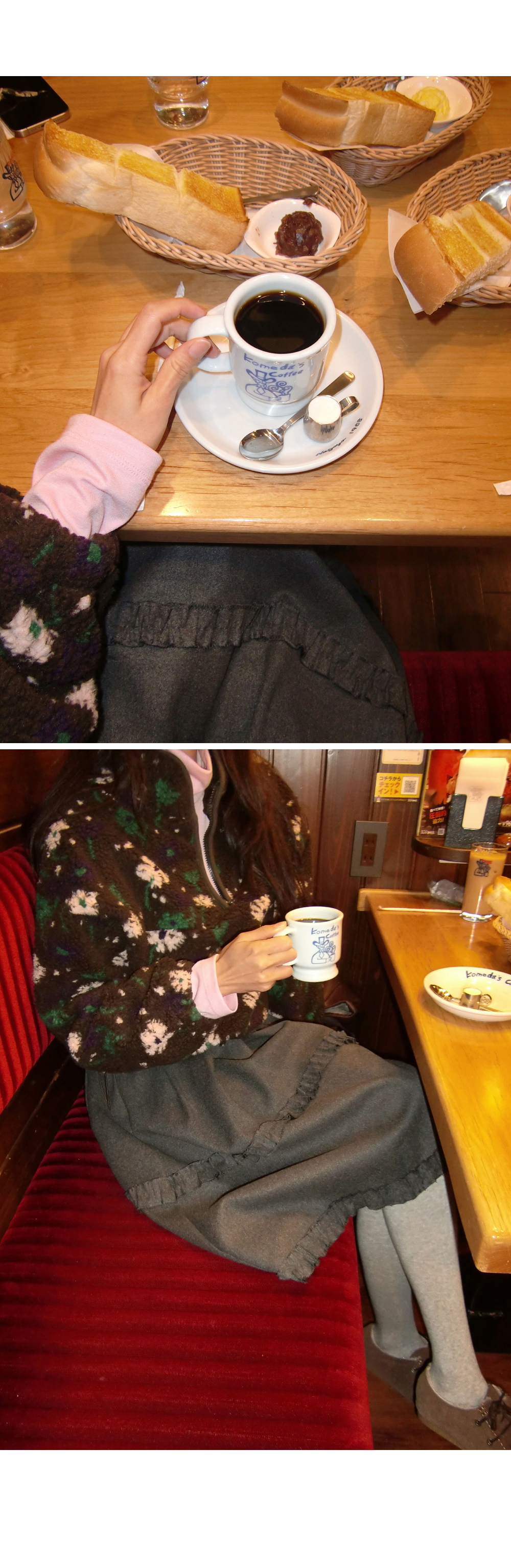 (모코블링)프릴 모직 미디스커트 모직스커트 미디스커트 프릴스커트 울스커트 겨울스커트 겨울치마