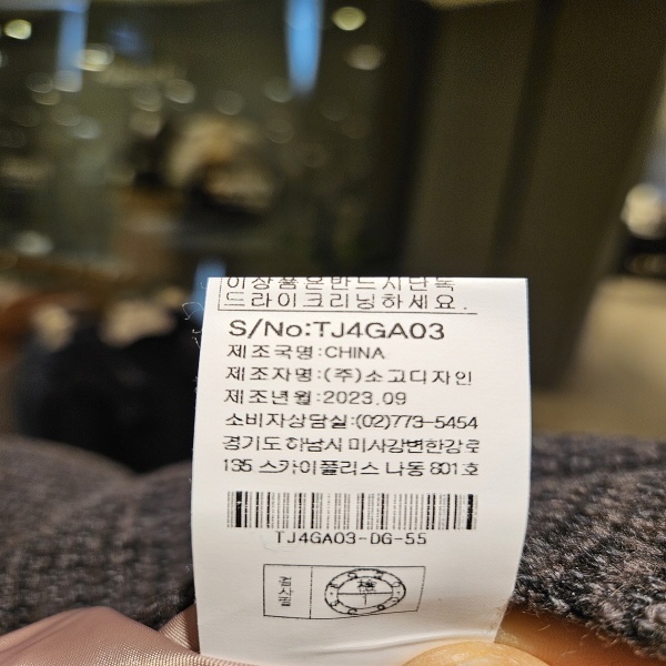 제품소재 : 울55%,폴리에스터20%,레이온15%,나일론10%,안감 폴리에스터100%