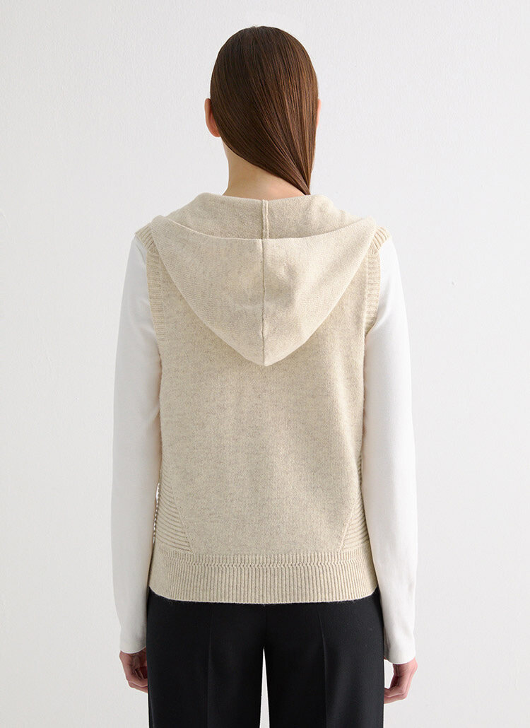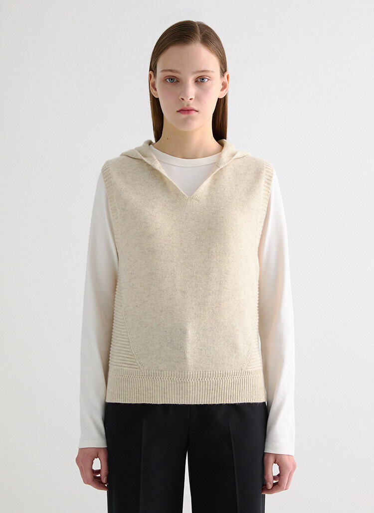 피팅정보 : 170CM 55사이즈 착용 대표이미지(오트칼라), 슬릿을 더한 후드넥으로 레이어드 스타일링하기 좋은 니트 베스트입니다. 캐주얼한 무드가 느껴지는 후드 디테일, 간절기 레이어드하기 좋은 아이템