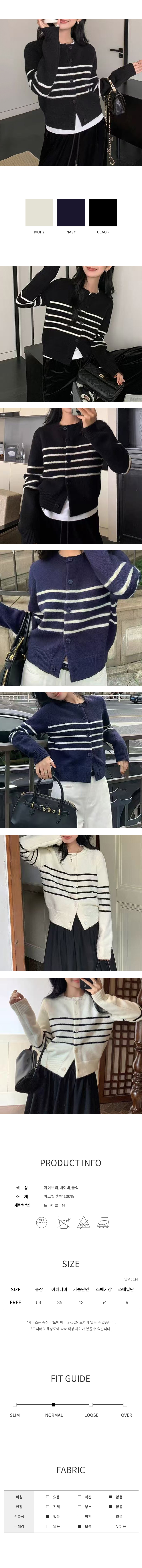 (귈림) 스트라이프 라운드넥 니트 가디건(G5FCD043P)