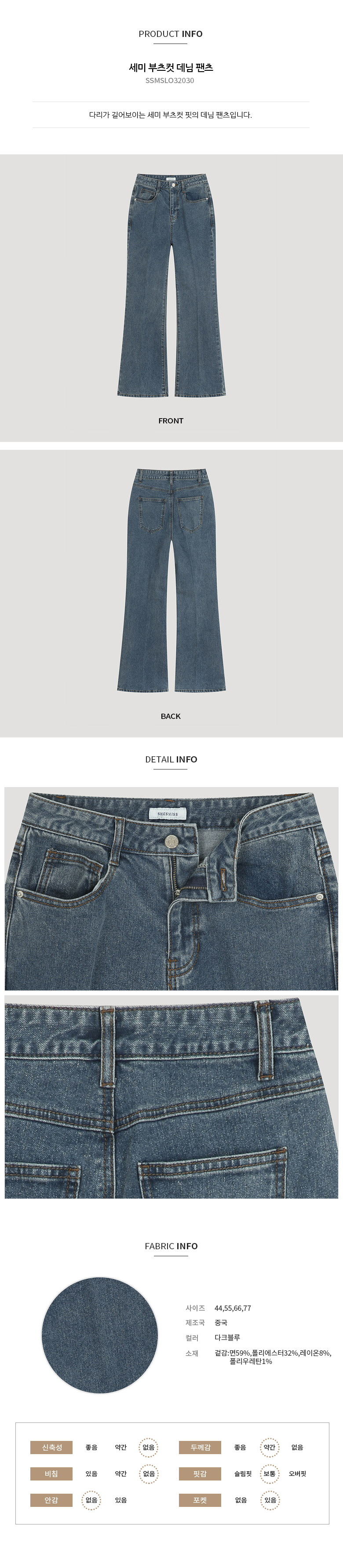 쉬즈미스 세미 부츠컷 데님 팬츠 SSMSLO32030