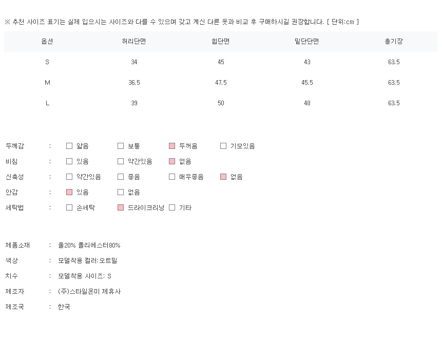 ※ 추천 사이즈 표기는 실제 입으시는 사이즈와 다를 수 있으며 갖고 계신 다른 옷과 비교 후 구매하시길 권장합니다.
