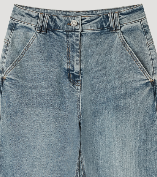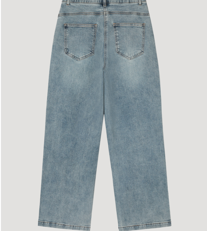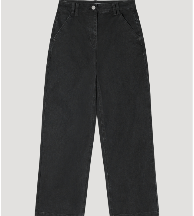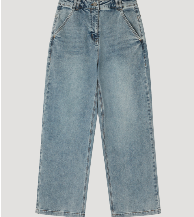 밑단까지 여유롭게 떨어지는 와이드 실루엣의 데님 팬츠입니다.