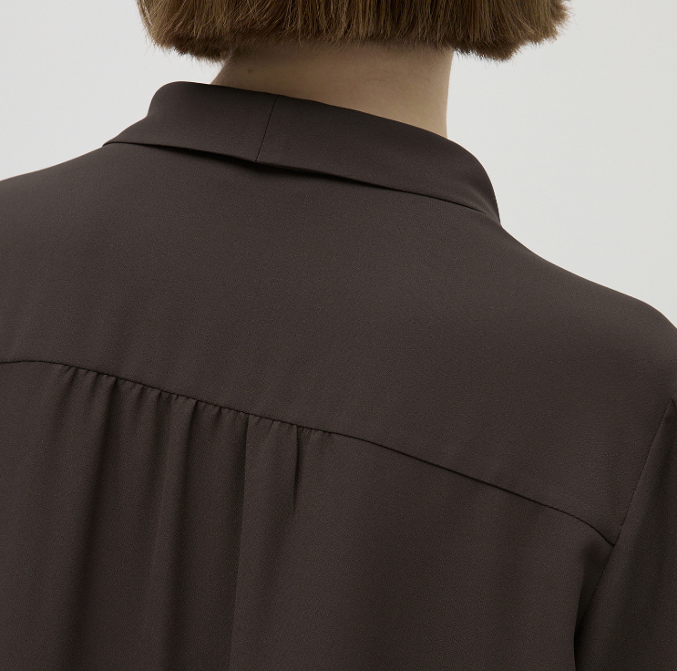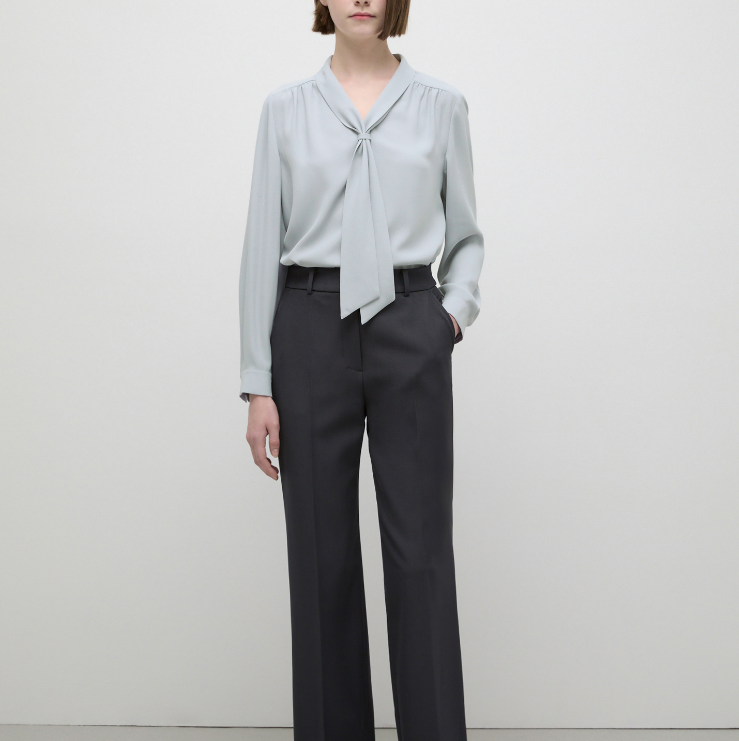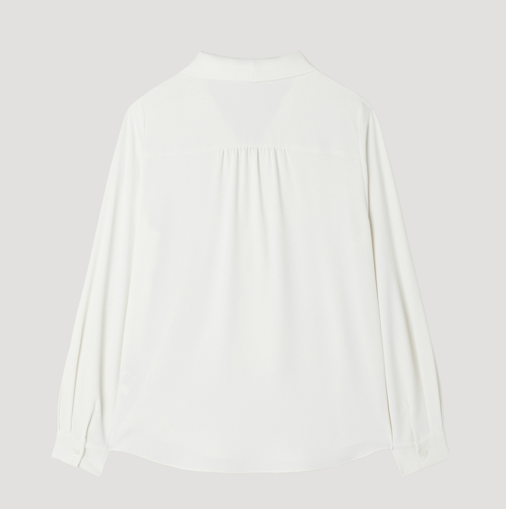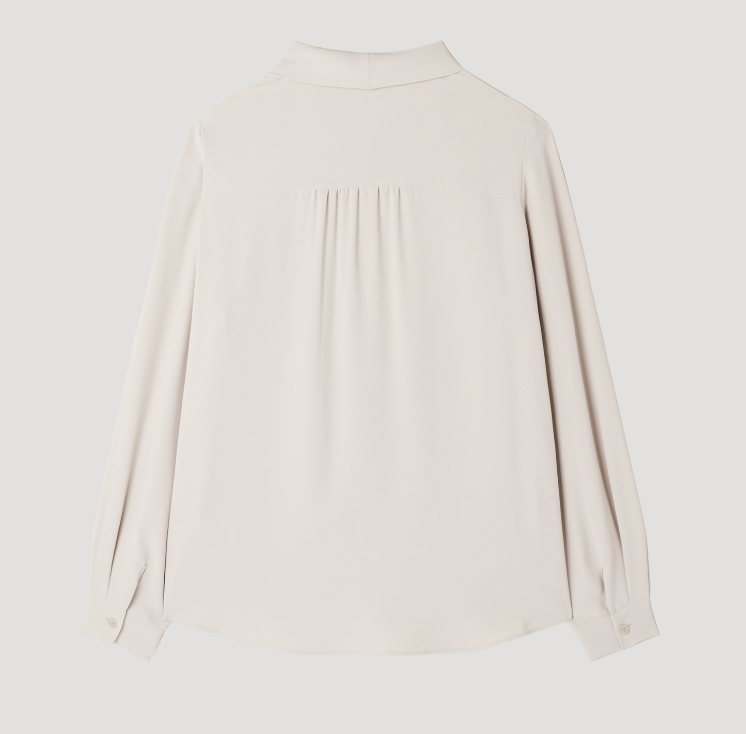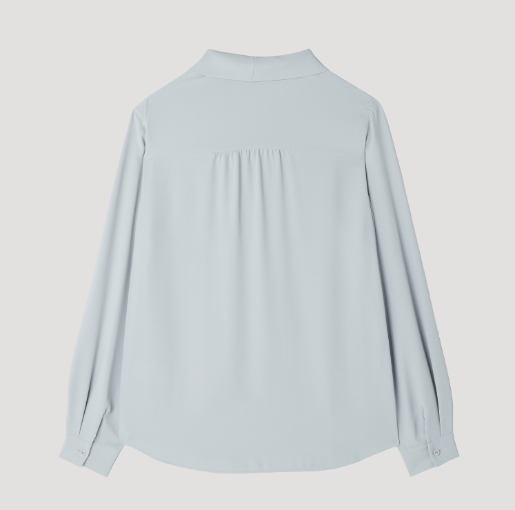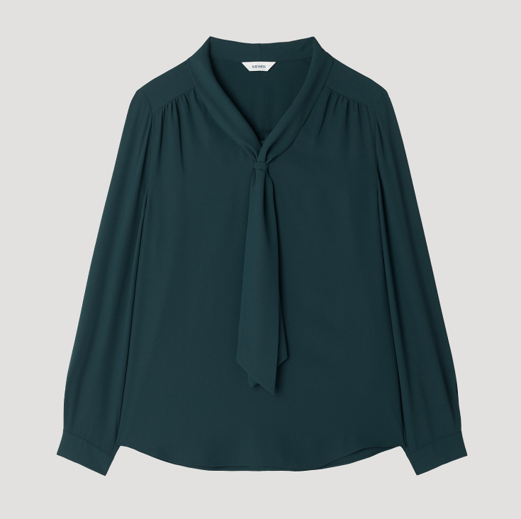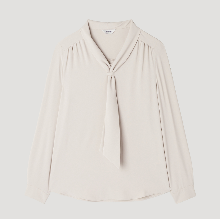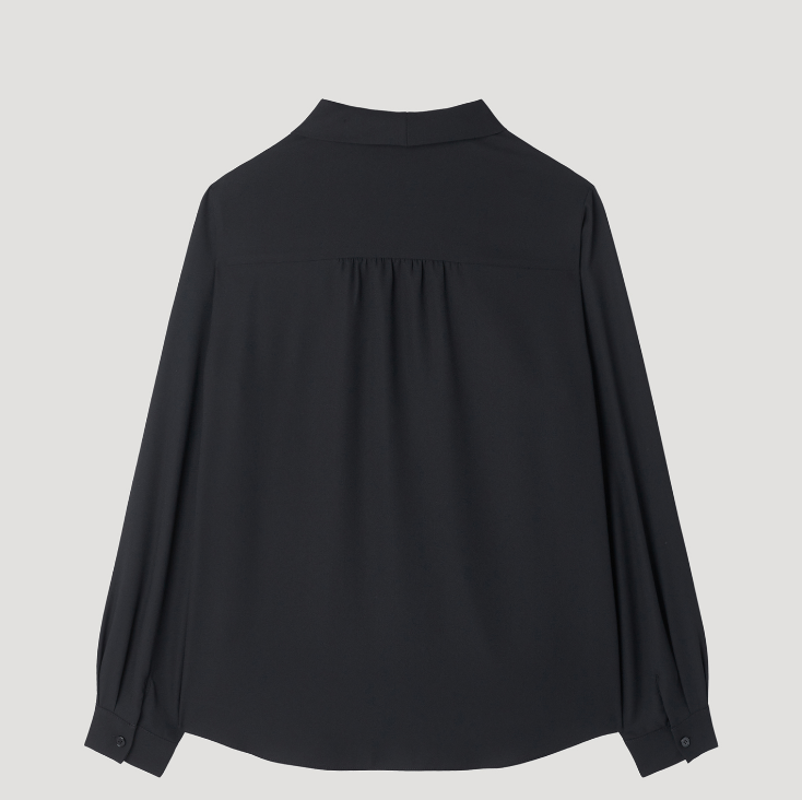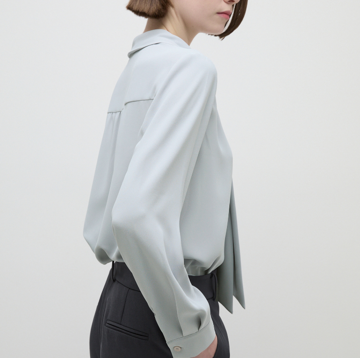 어깨라인의 셔링 디테일과 타이 넥 디자인으로 포인트를 준 블라우스입니다.