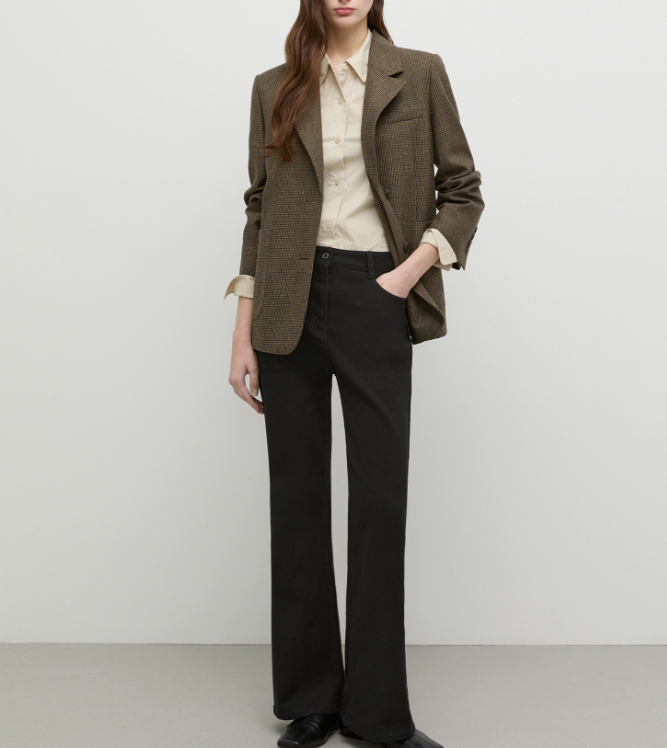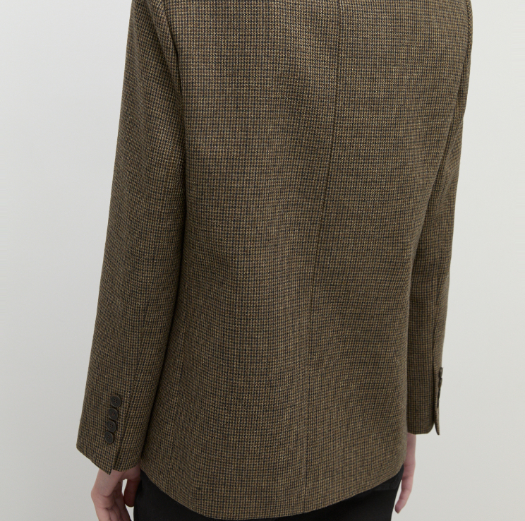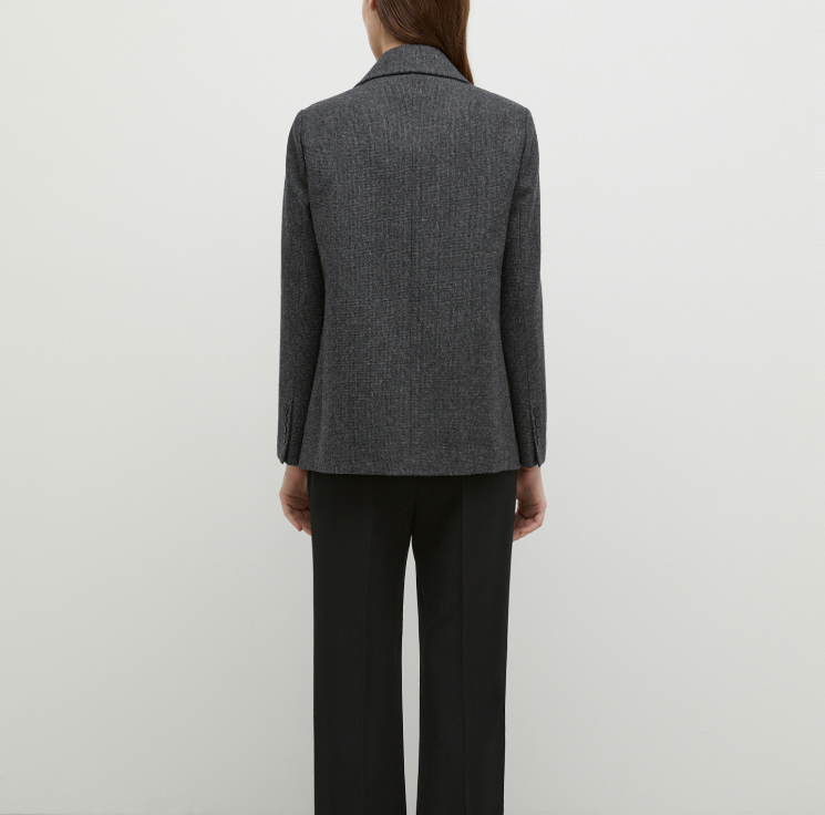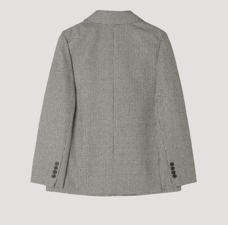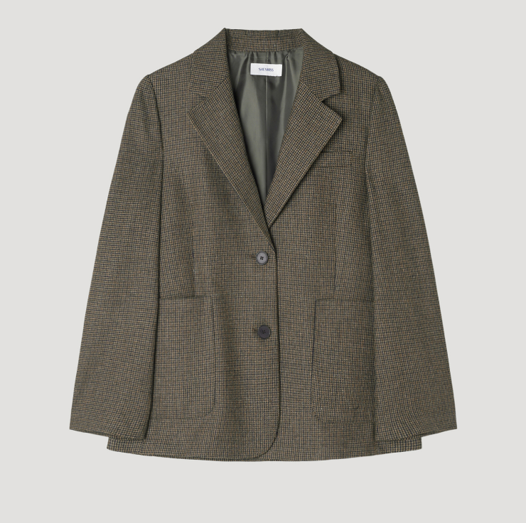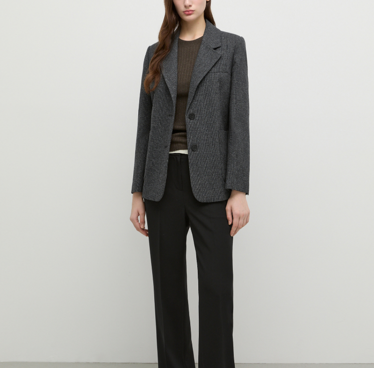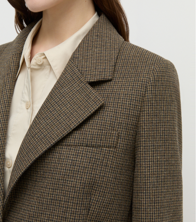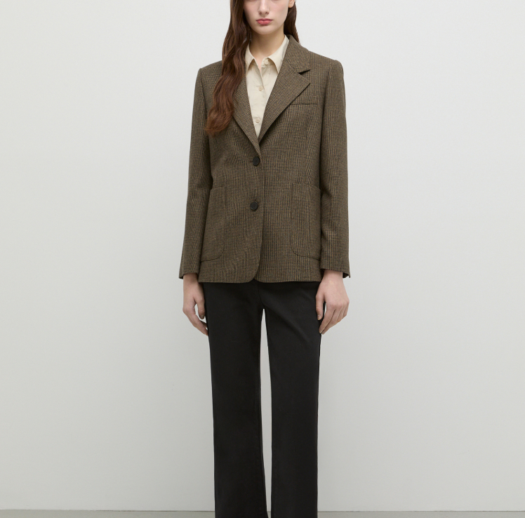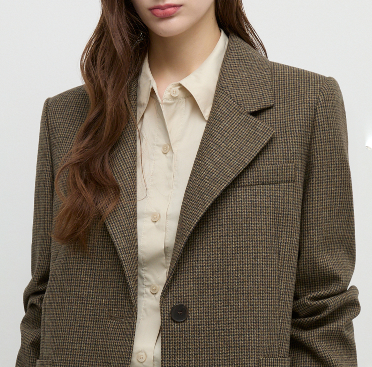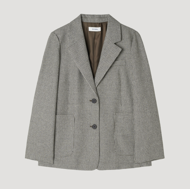 울 블렌드 소재로 보온성을 챙긴 투 버튼 체크 자켓입니다.