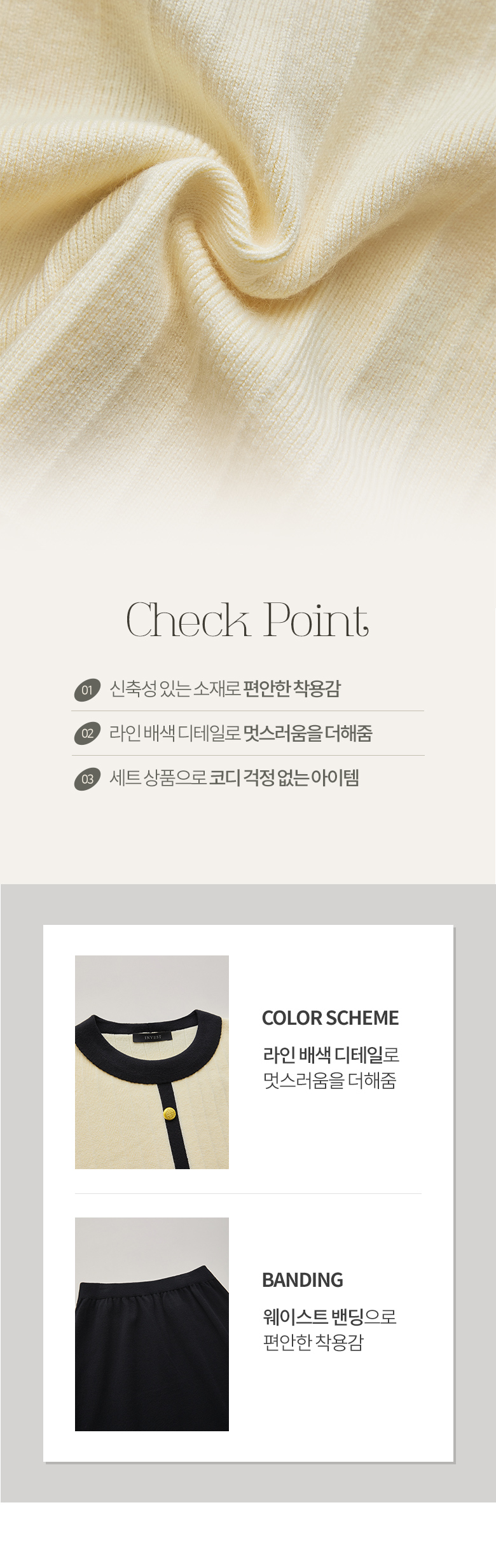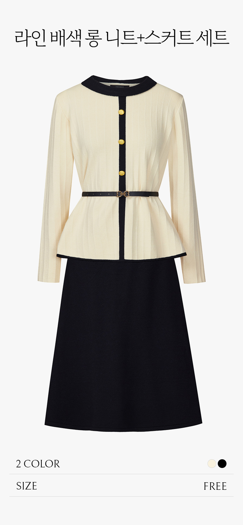 포커스 라인 배색 롱 니트+스커트 세트 PBINF5F1KT2151