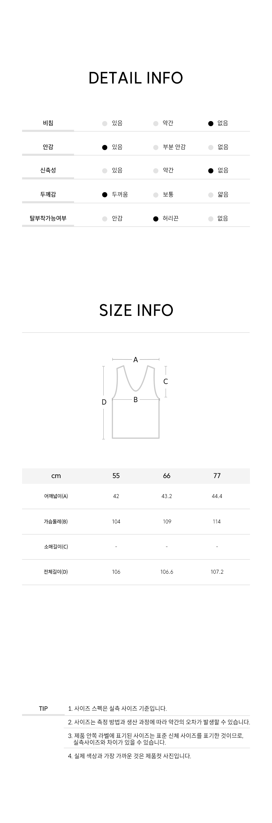 | 치수 | 55,66 - 사이즈는 측정방법에 따라 1~3cm 정도 오차가 있을 수 있습니다. |