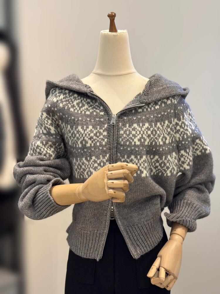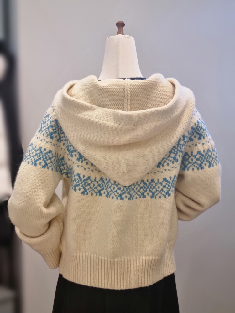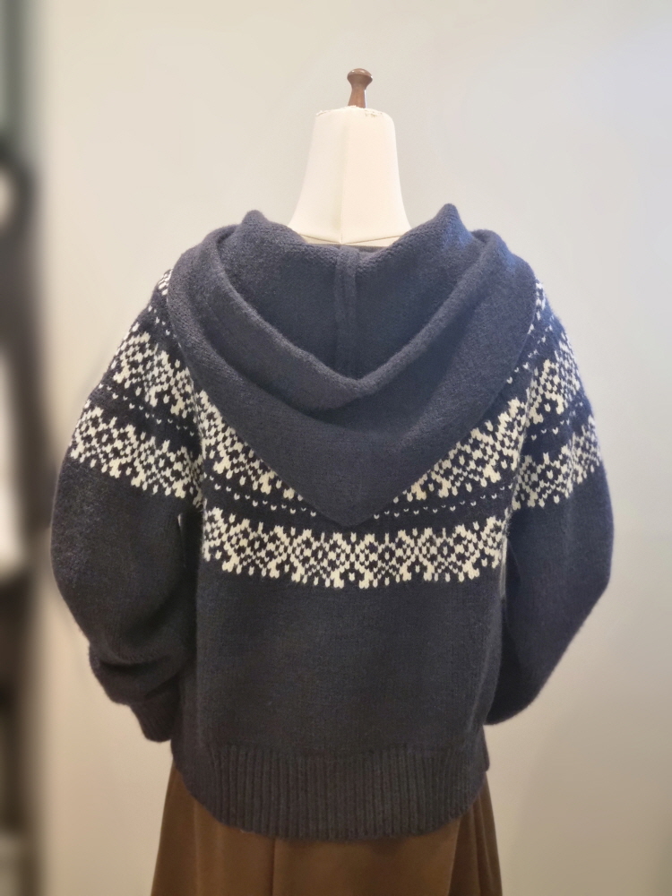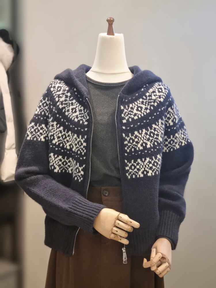 넓은 후드가 경쾌한 예쁜 니트 가디건입니다