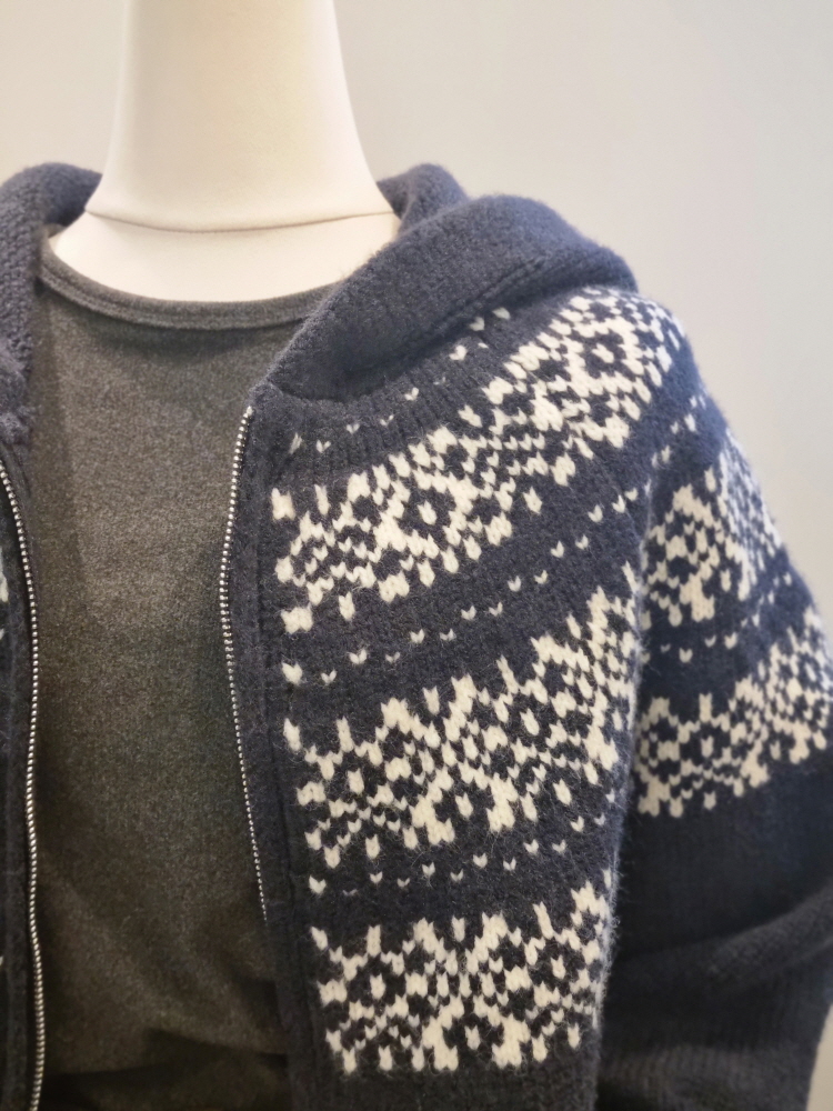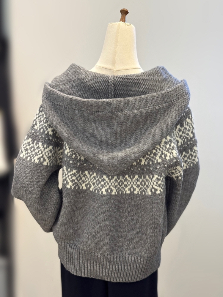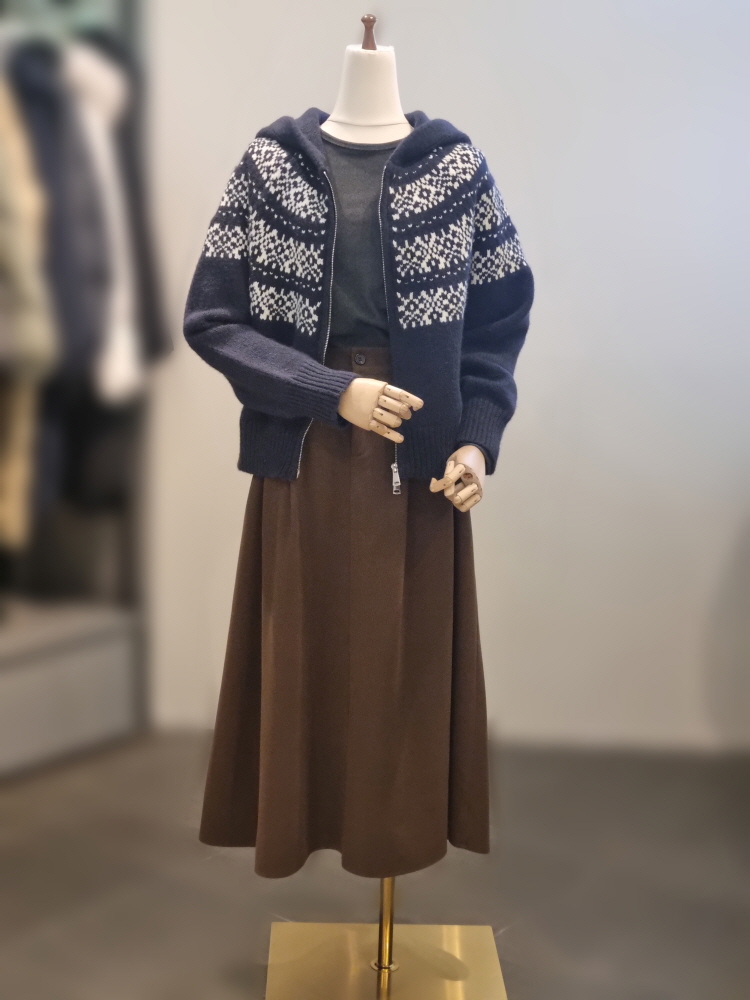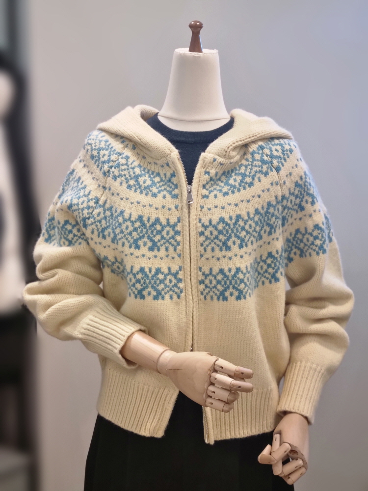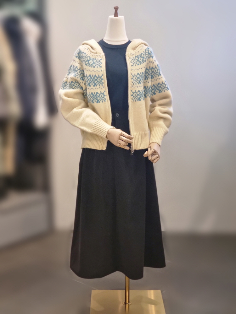 넓은 후드가 경쾌한 예쁜 니트 가디건입니다