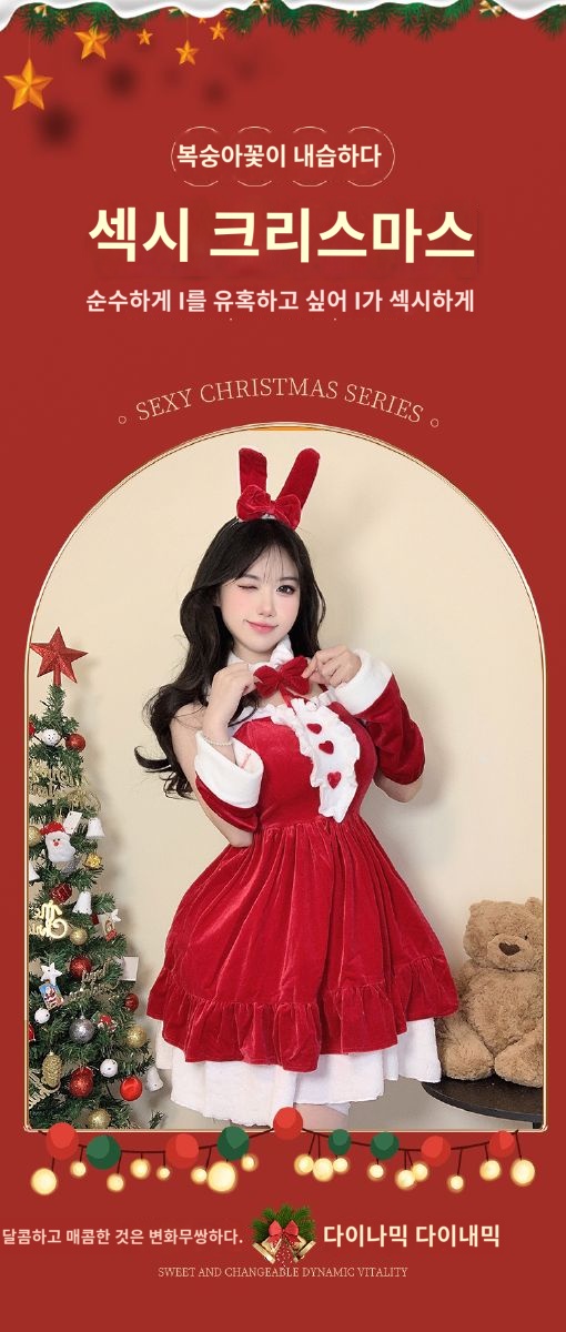 9833레드[원피스+팔소매+타이+귀+화이트스타킹]