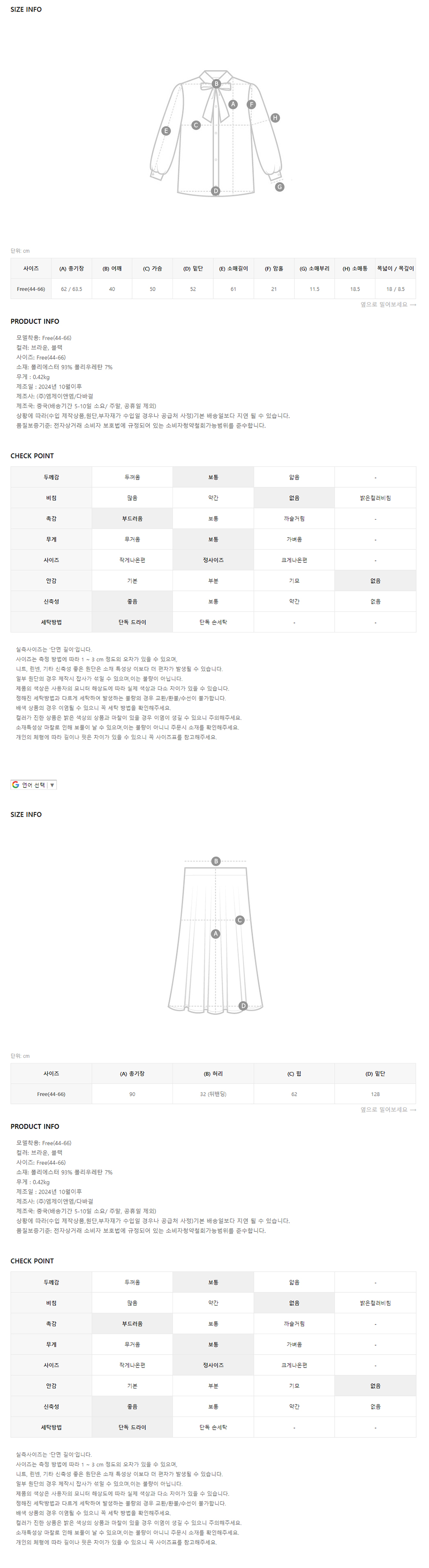 정확한 사이즈는 하단의 size표를 꼭! 참고해주세요 야외(실내)촬영 특성상 실제 상품과 컬러차이가 있을 수 있습니다. 정확한 컬러는 하단의 디테일컷을 참고해주세요. |