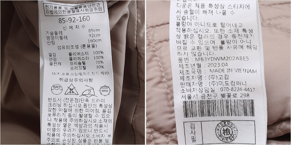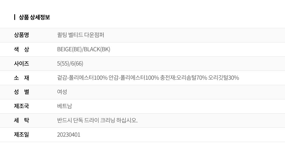 퀼팅 벨티드 다운점퍼 MB3YDWM202A_P379620520