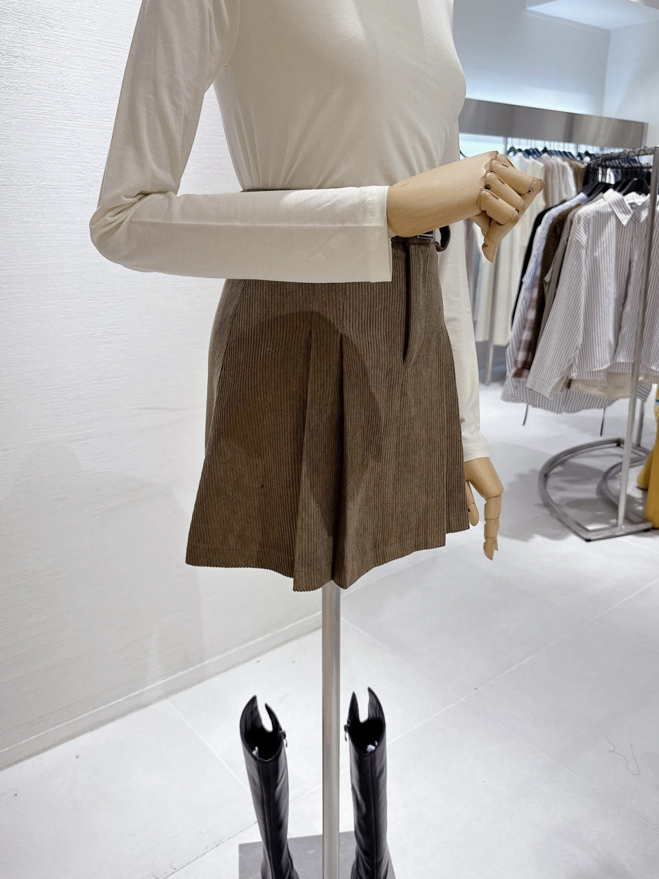 - 골덴 미니스커트로 나와 포근하면서 멋스러운 스타일링이 가능합니다.