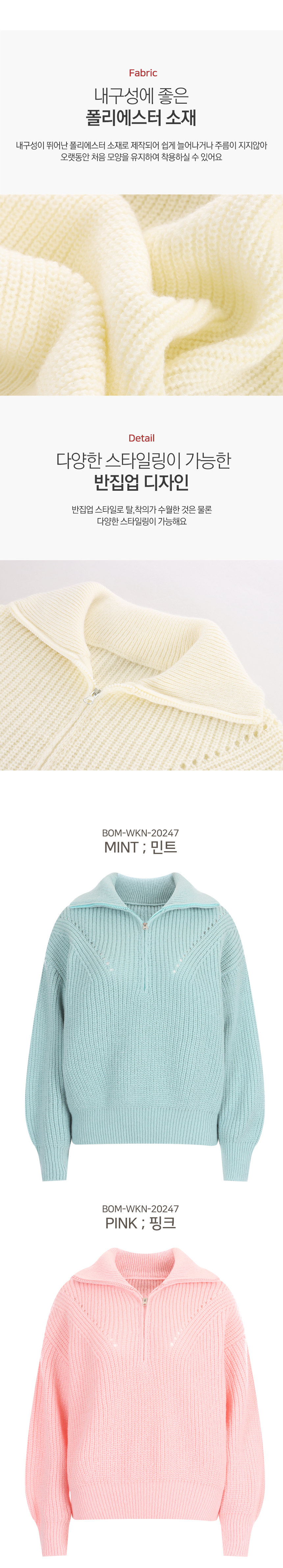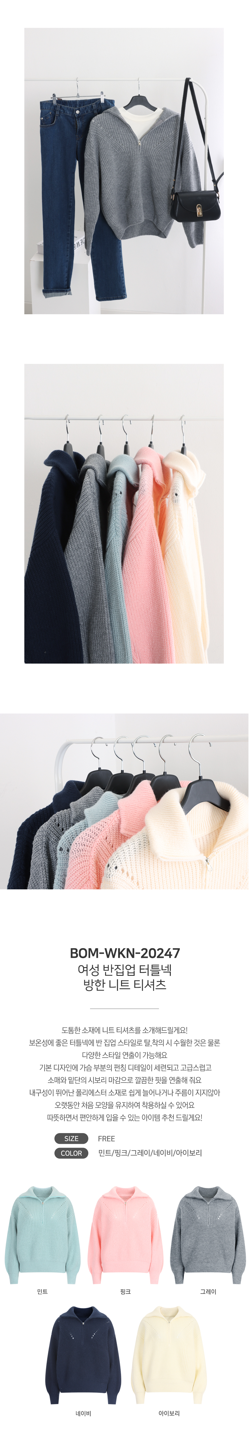 샵앤 여성 반집업 터틀넥 방한 니트 티셔츠 BOM-WKN-20247-민트