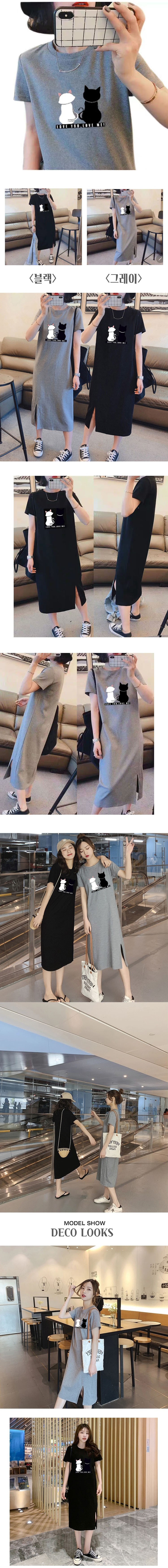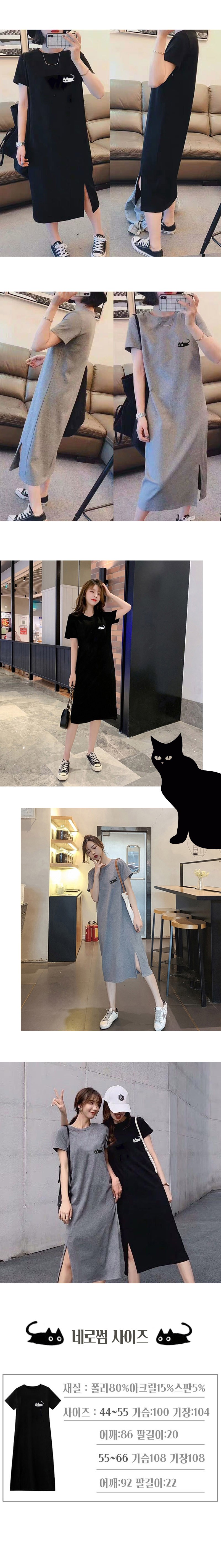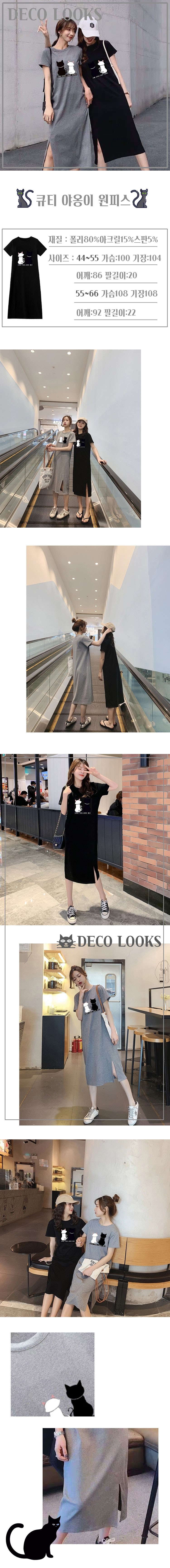 큐티 네로썸 고양이 캐쥬얼 롱 모던 반팔 원피스 홈웨어