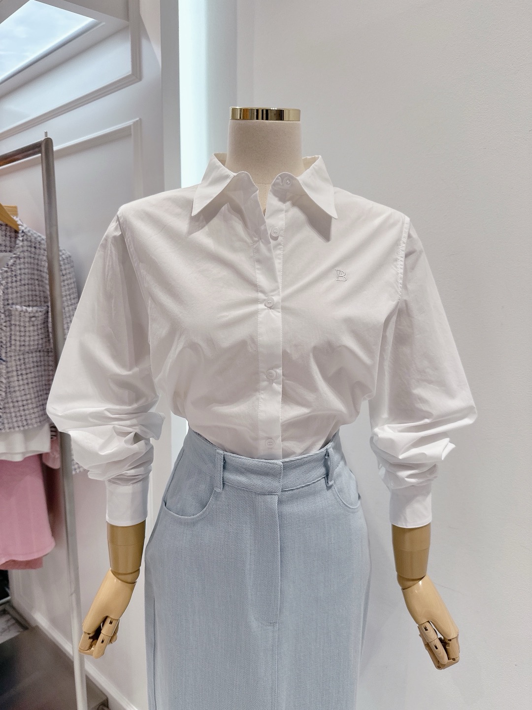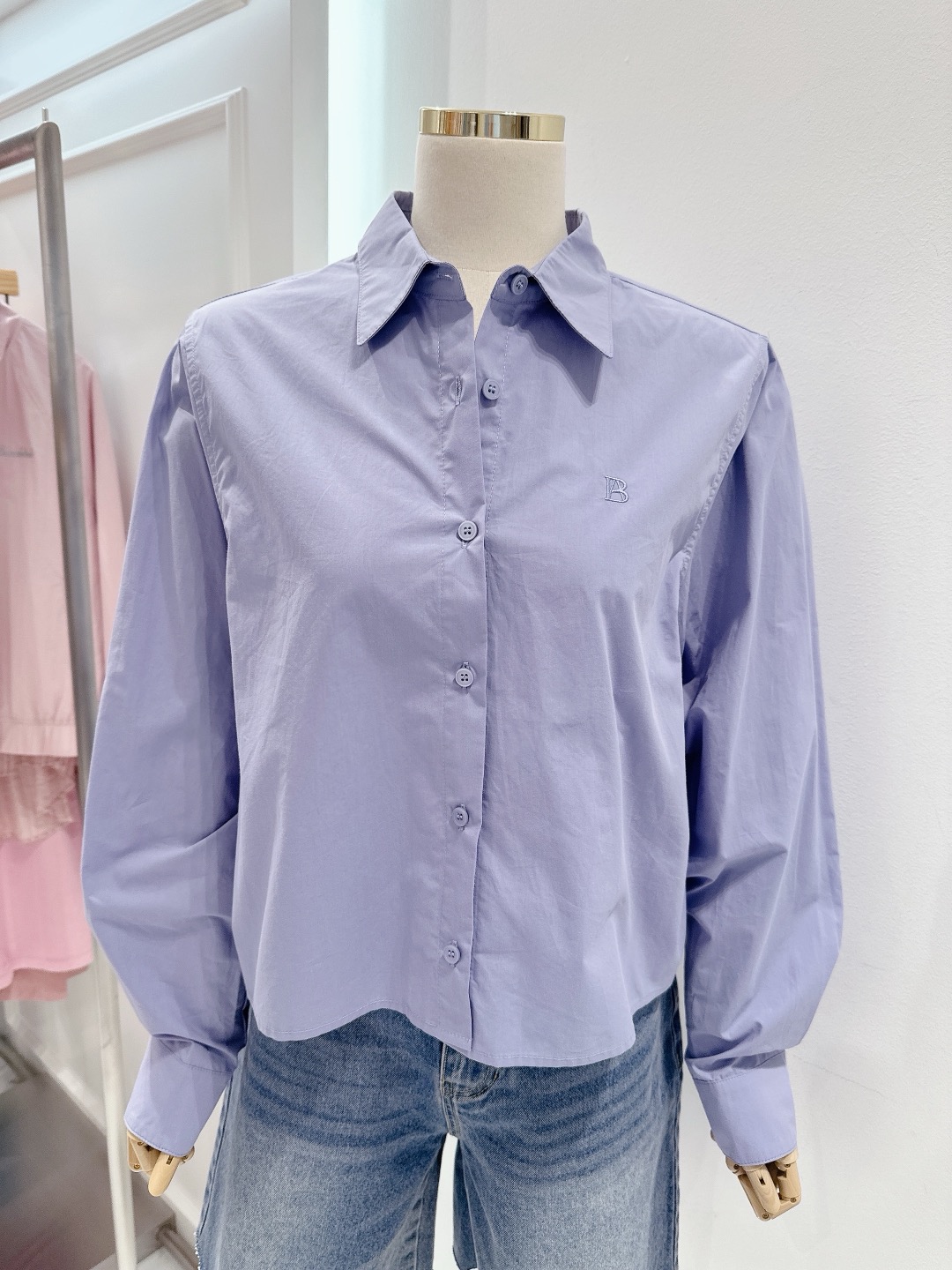 ■ 베이직 면 크롭 셔츠
