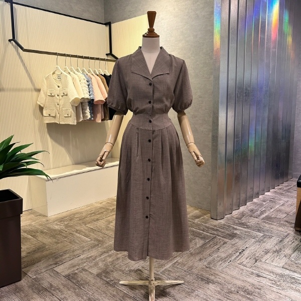 2025년 S/S 신상 플리츠 카라 롱 원피스 입니다.