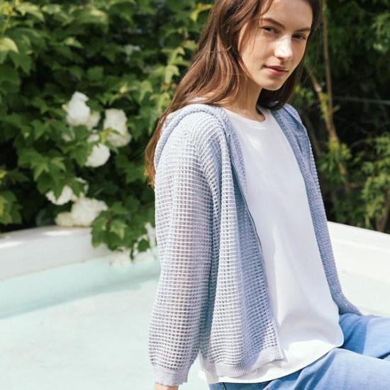 (롯데백화점)메쉬 니트 후드 집업 J5B5N301