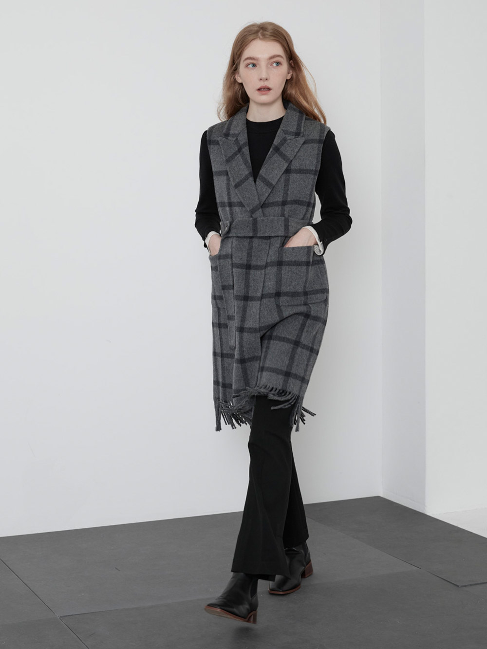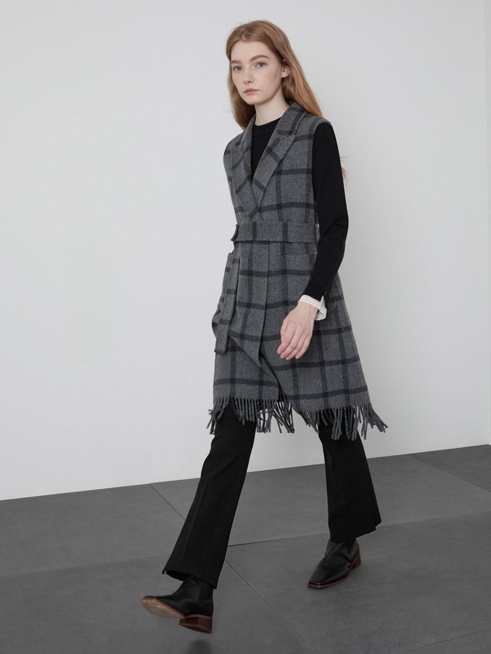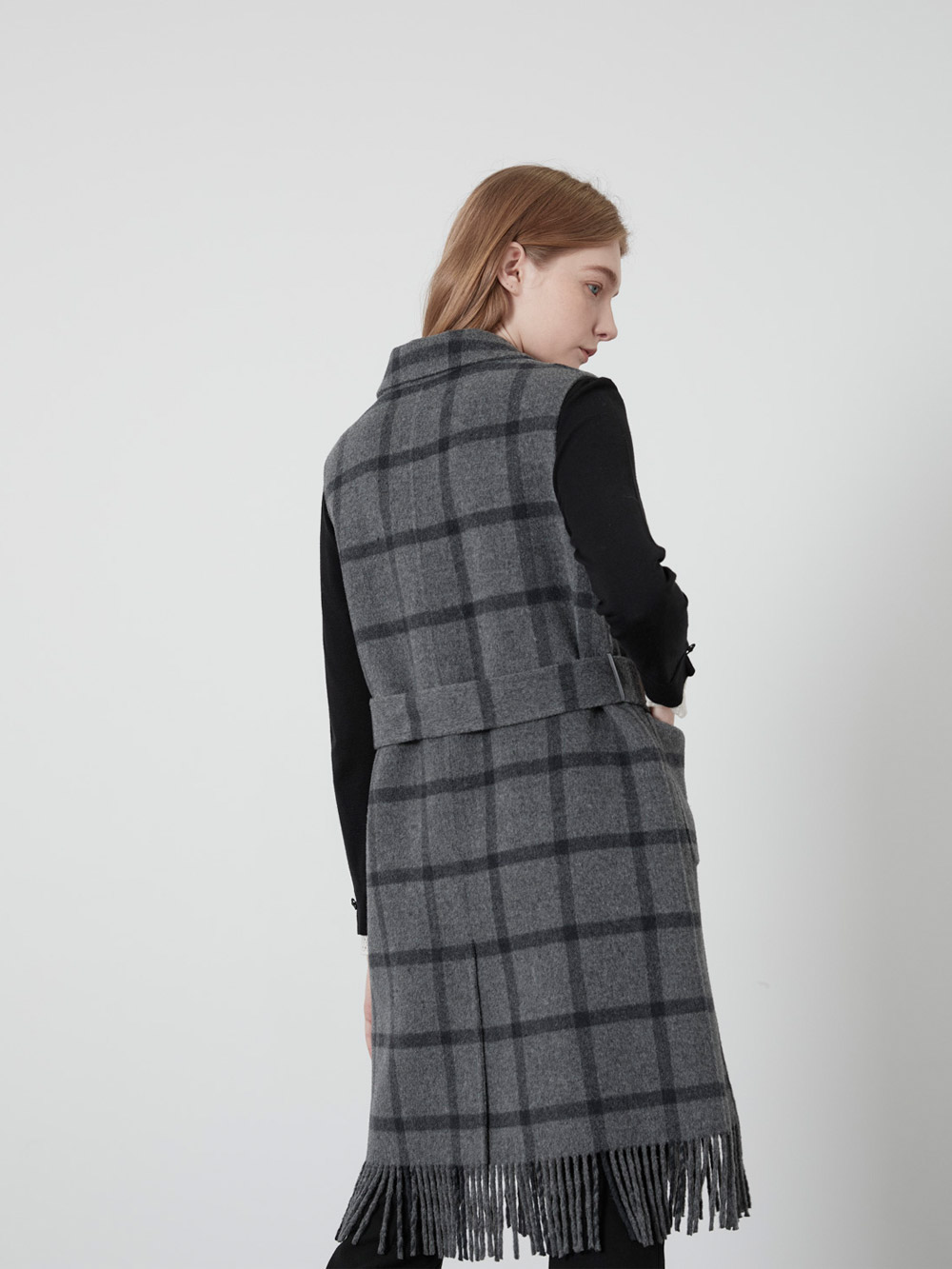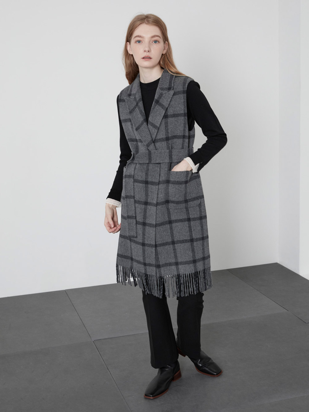 하프클럽/올리비아로렌 프린지 체크 베스트_VOCQCYW9321