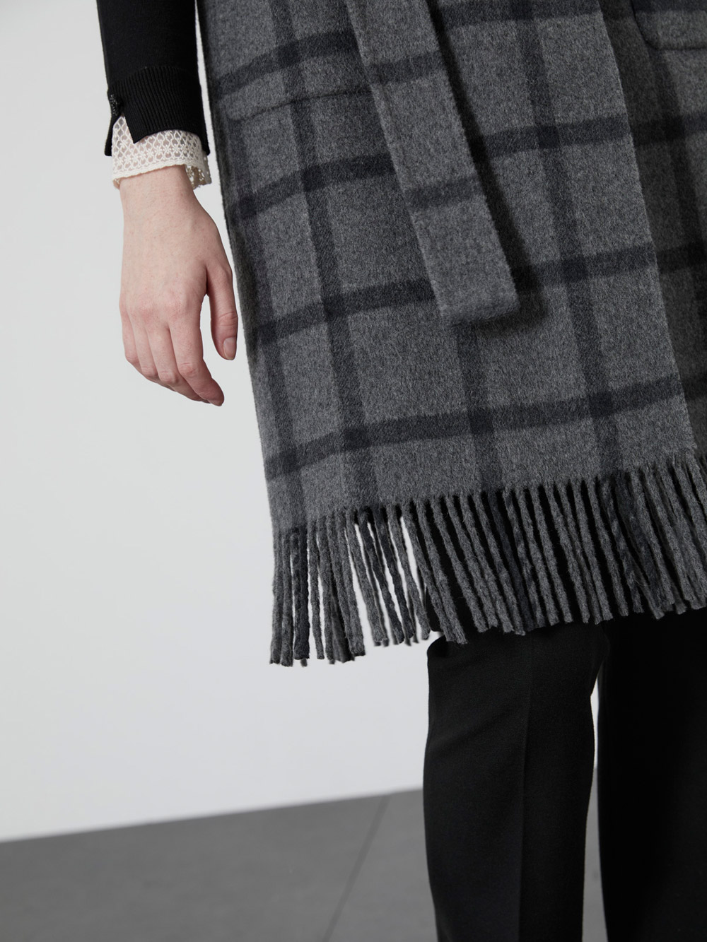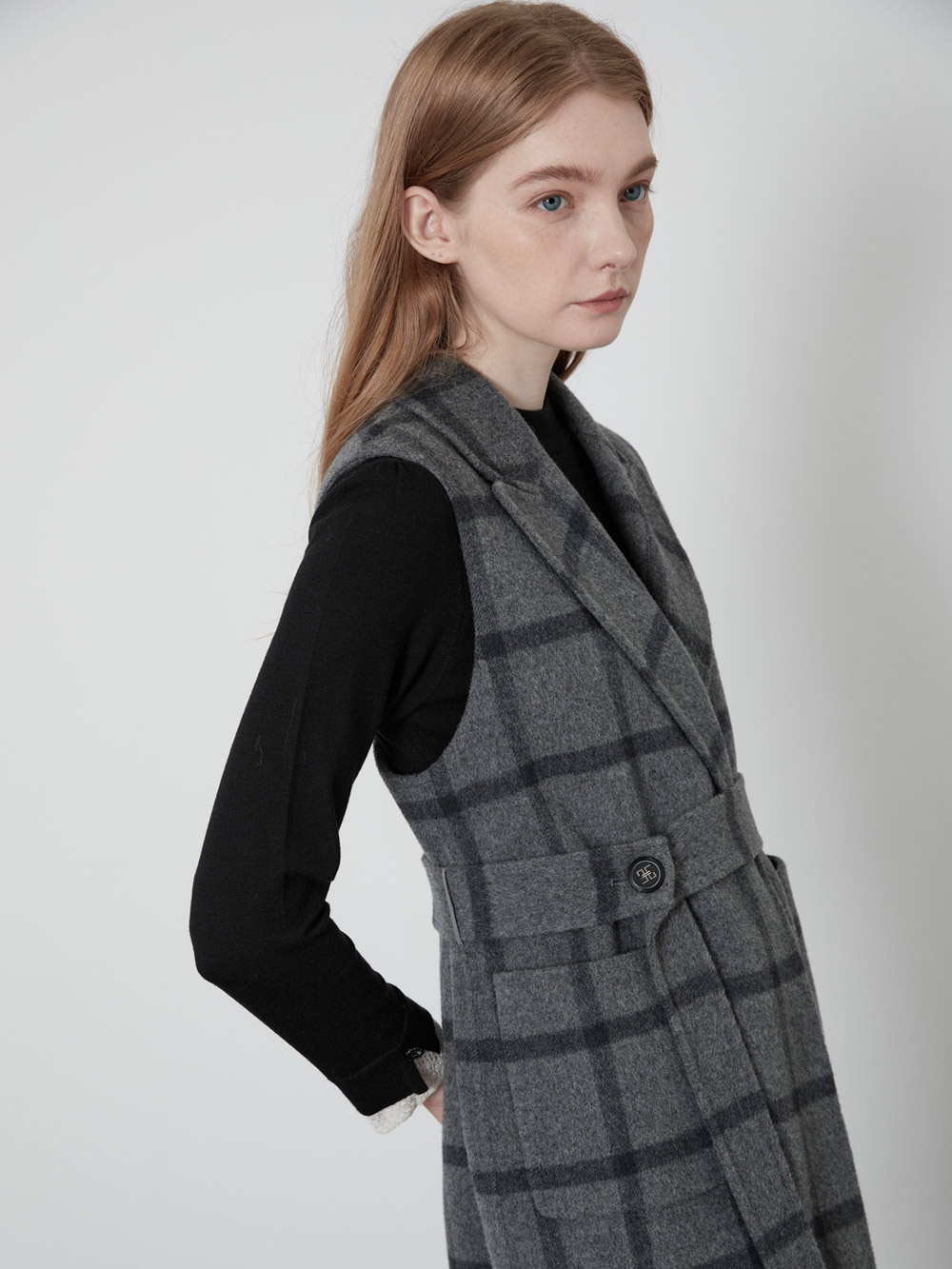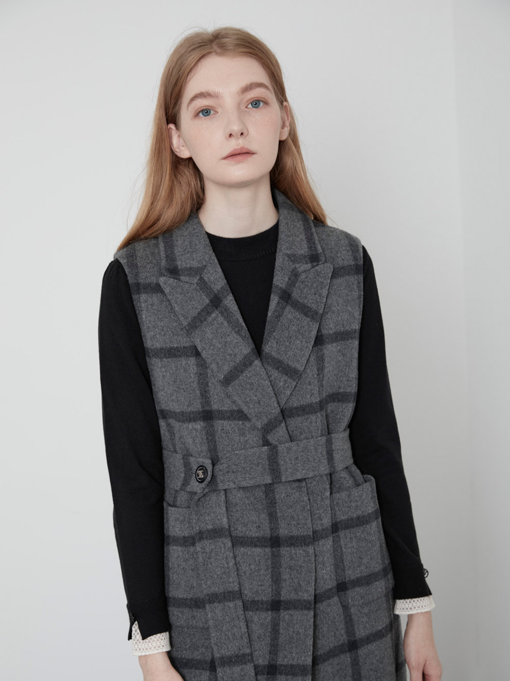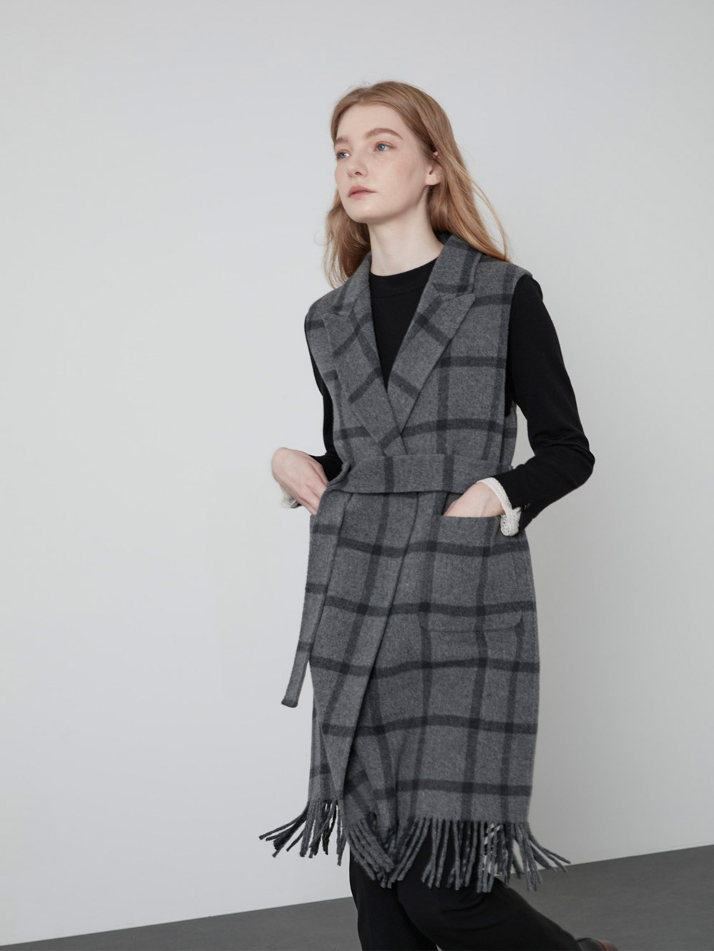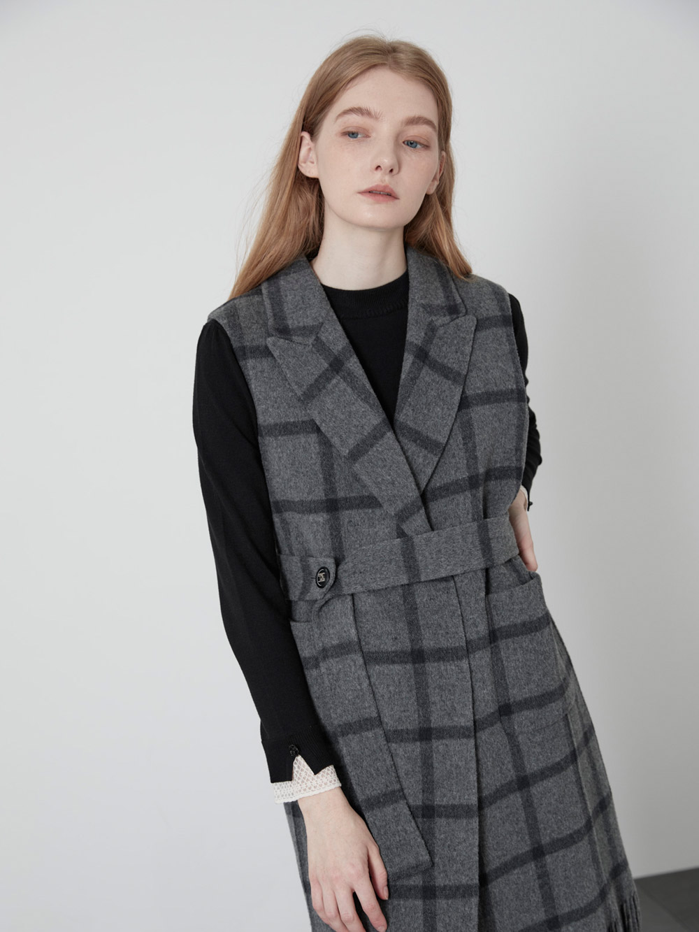 하프클럽/올리비아로렌 프린지 체크 베스트_VOCQCYW9321