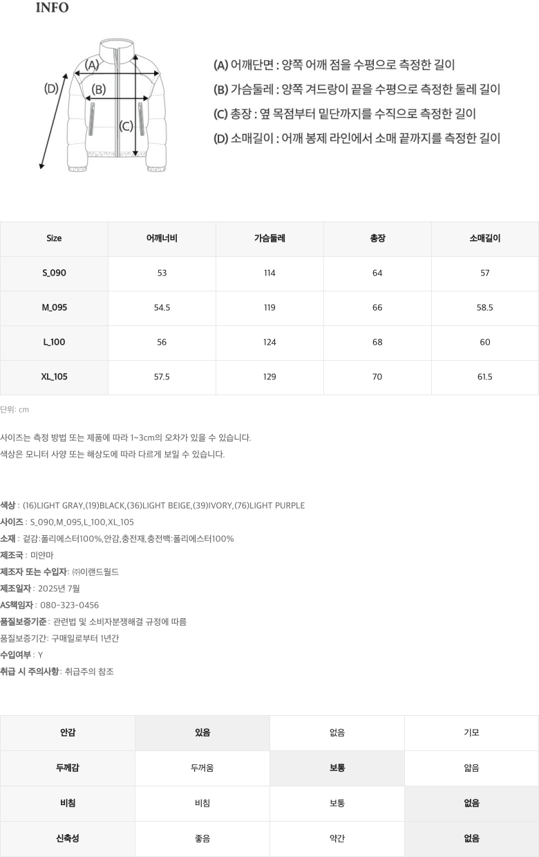 (롯데백화점)(공용) Light Padded Jacket WHJPF4911U