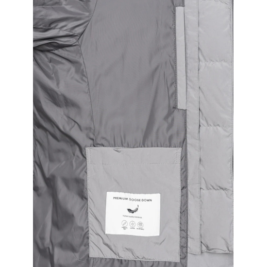 구스다운 충전재를 사용하여 보온성이 뛰어나며, 나일론 혼방 소재로 내구성과 활동성을 높였습니다.