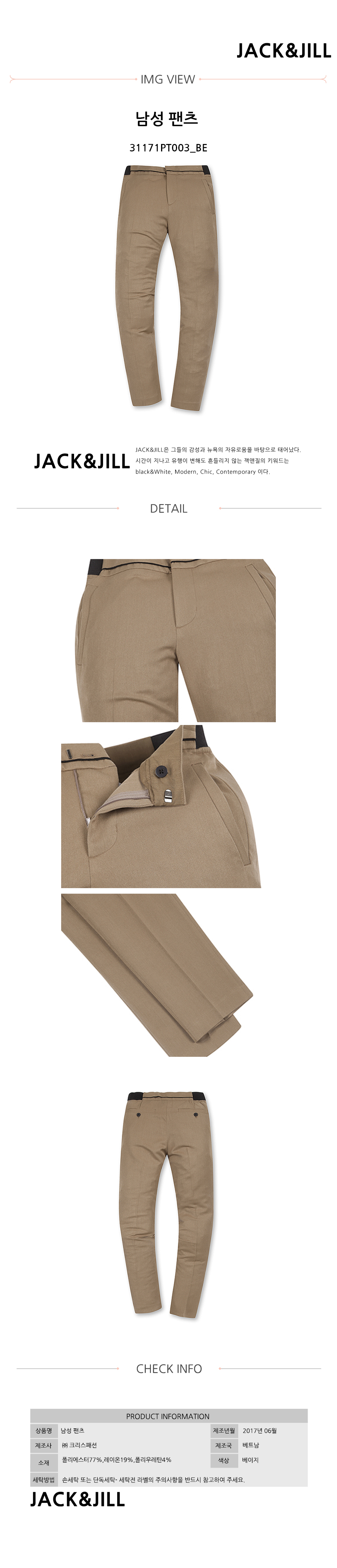 잭앤질잭앤질 남성 팬츠(31171PT003_BE)