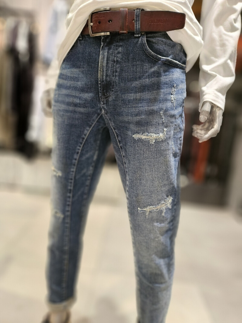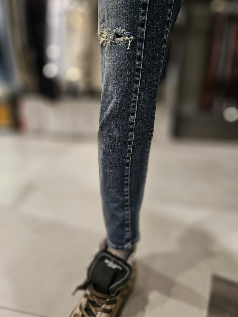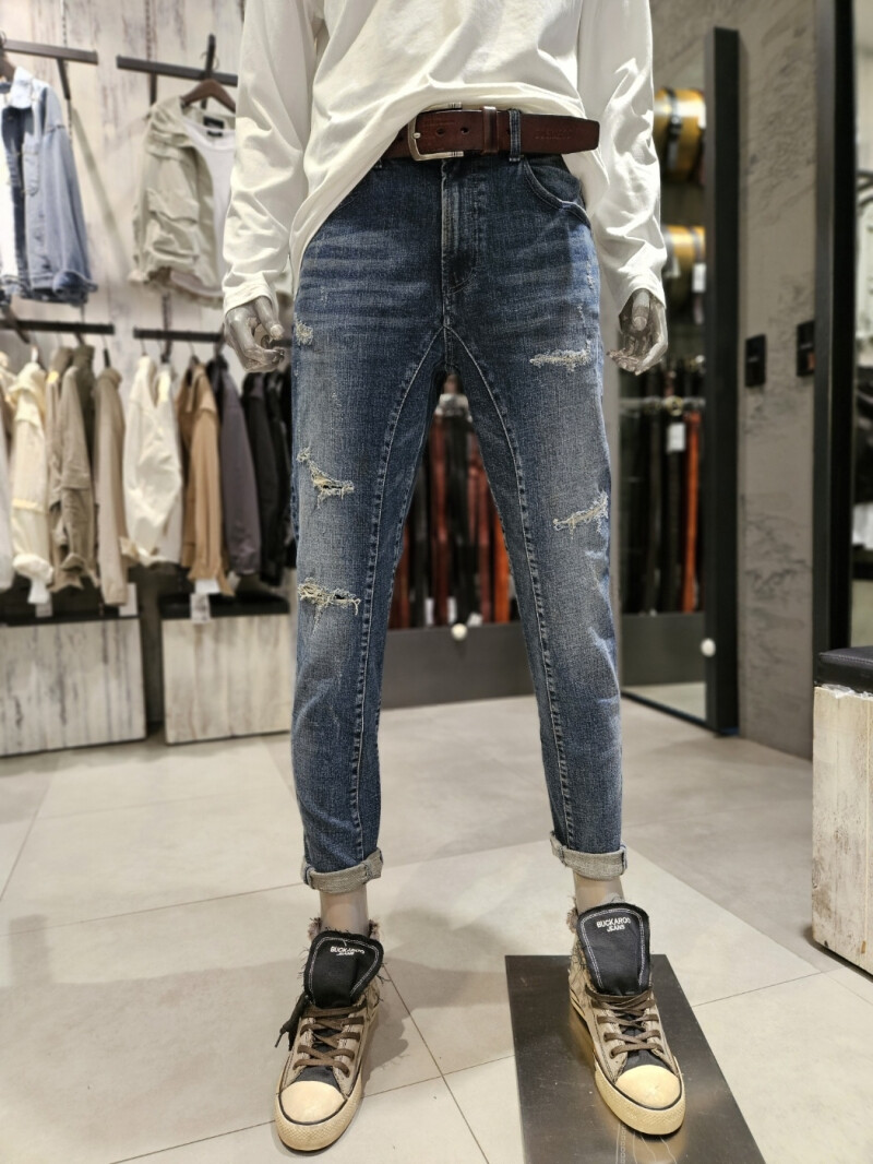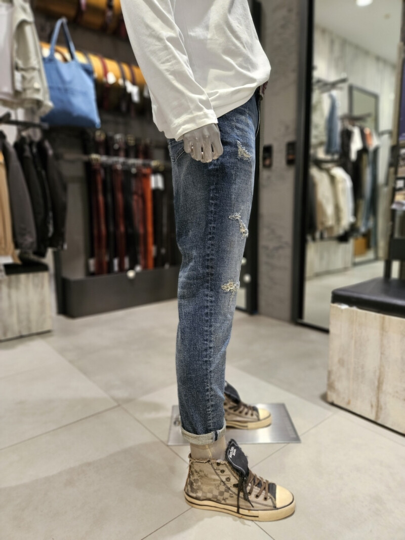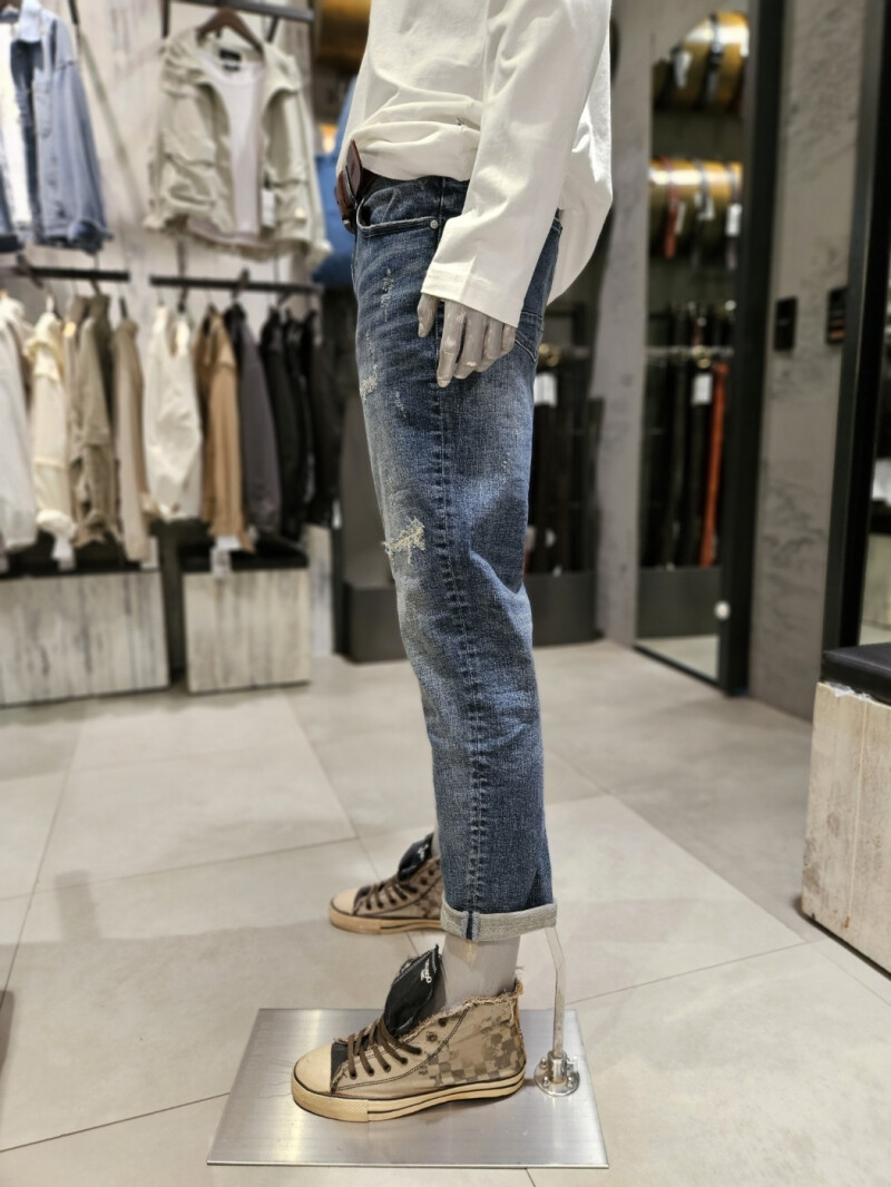데님 본연의 인디고 칼라감과 사방슬럽 텍스쳐의 표현을 극대화 하고