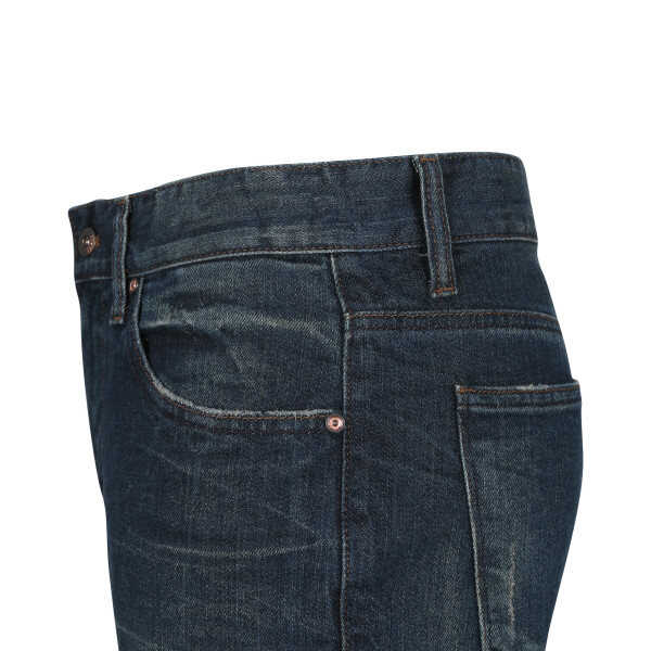 전체적으로 슬림한 핏의 한국인 체형에 가장 최적화 되어 제작된 핏의 데님팬츠이며 딥한 인디고 컬러감에 스타일링 하기 좋습니다
